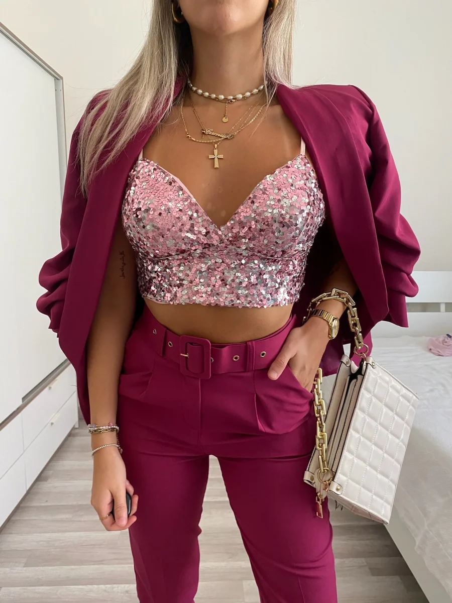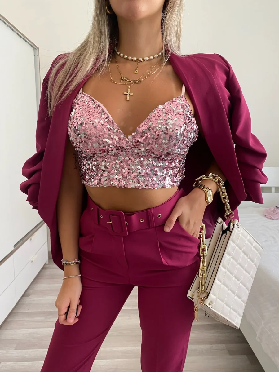 Top con paillettes rosa