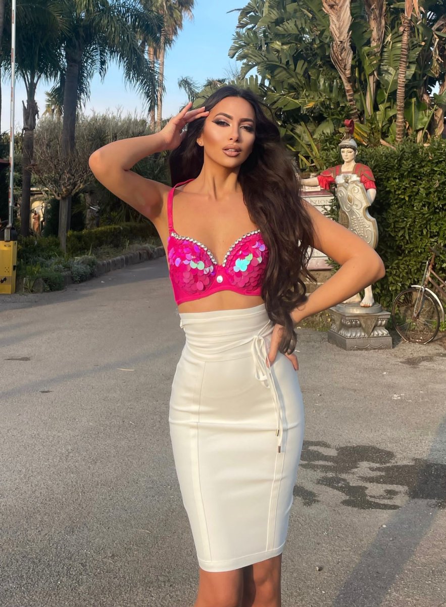corpino con coppe rigide con ganci sulla schiena completamente ricoperto da maxi paillettes