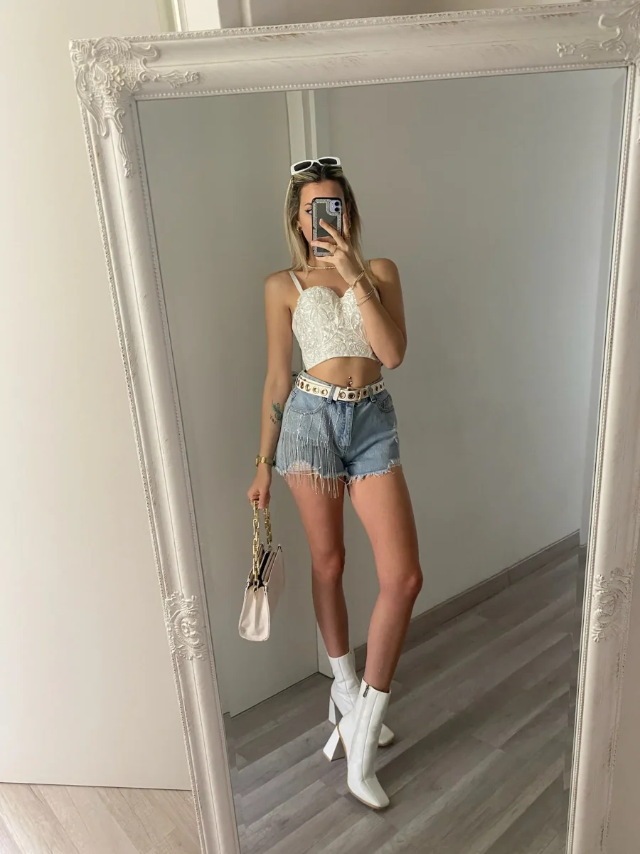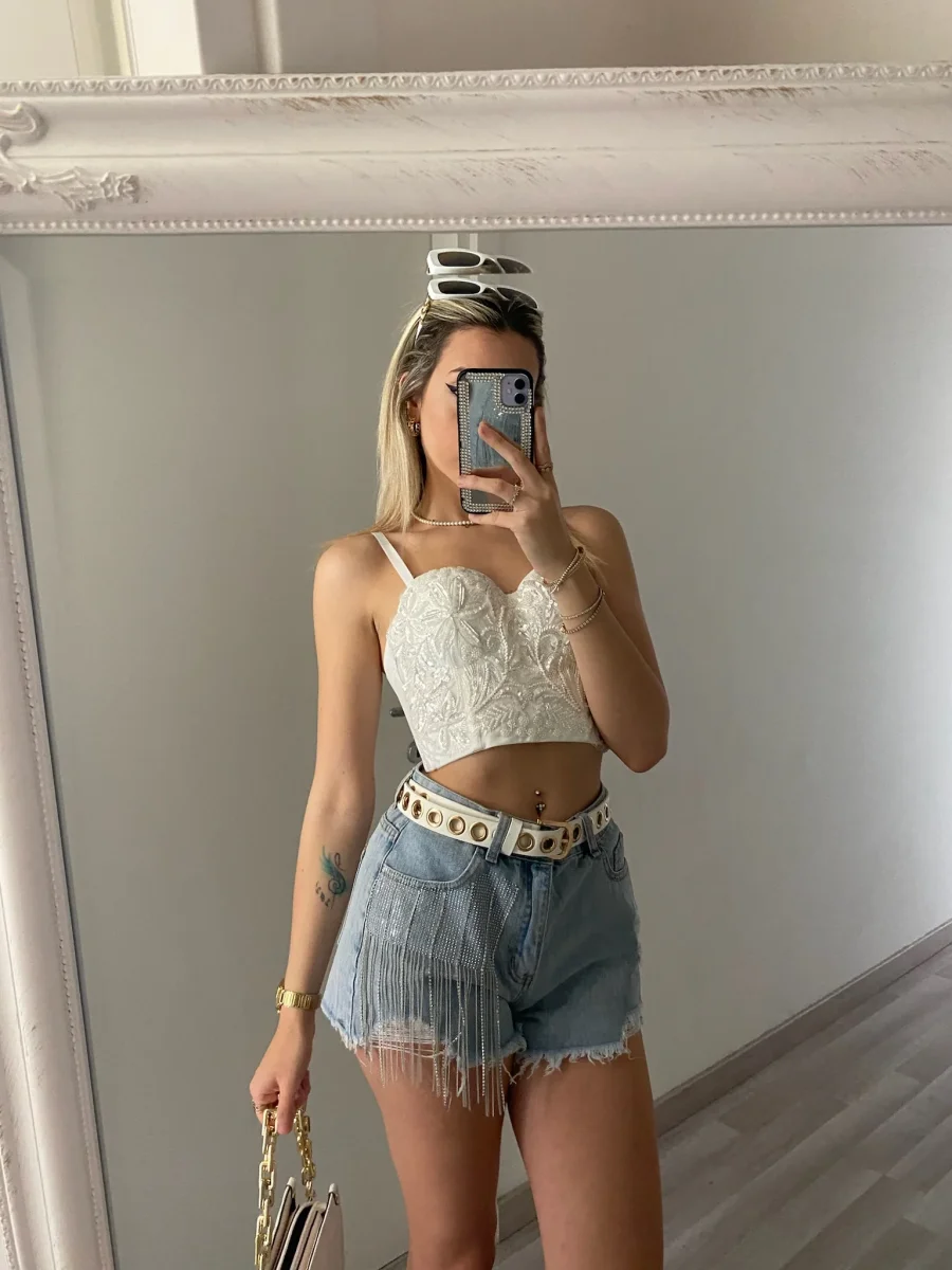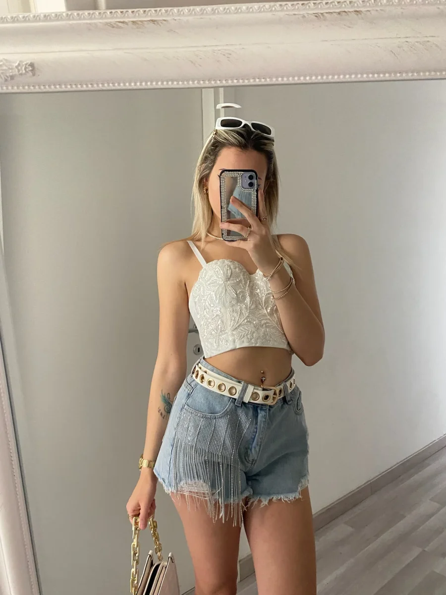 Top altissima qualità con corpino completamene ricamato con paillettes