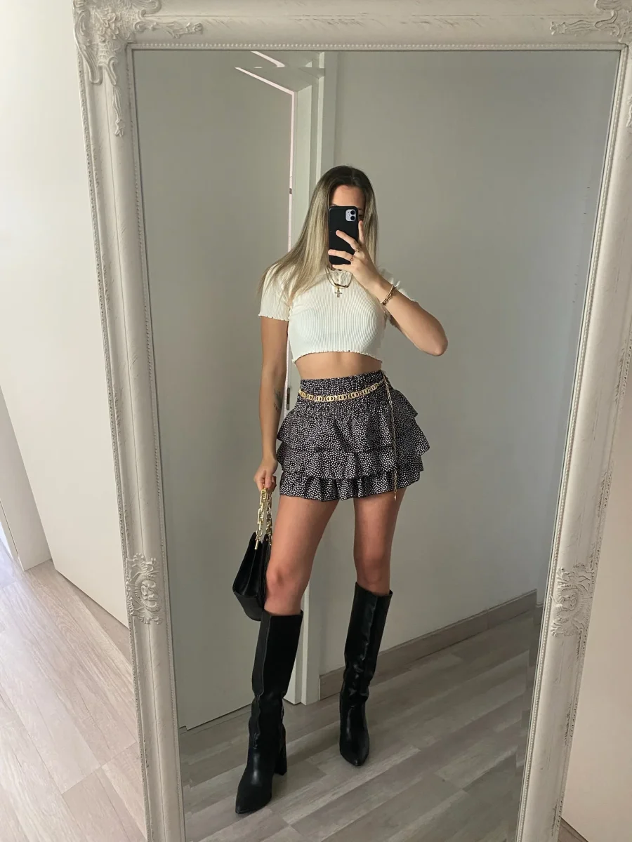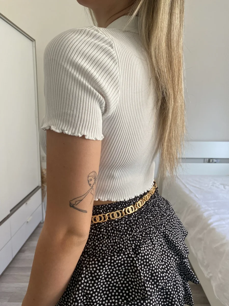 Top crop a costine manica lunga a manica corta dettaglio bottoncini