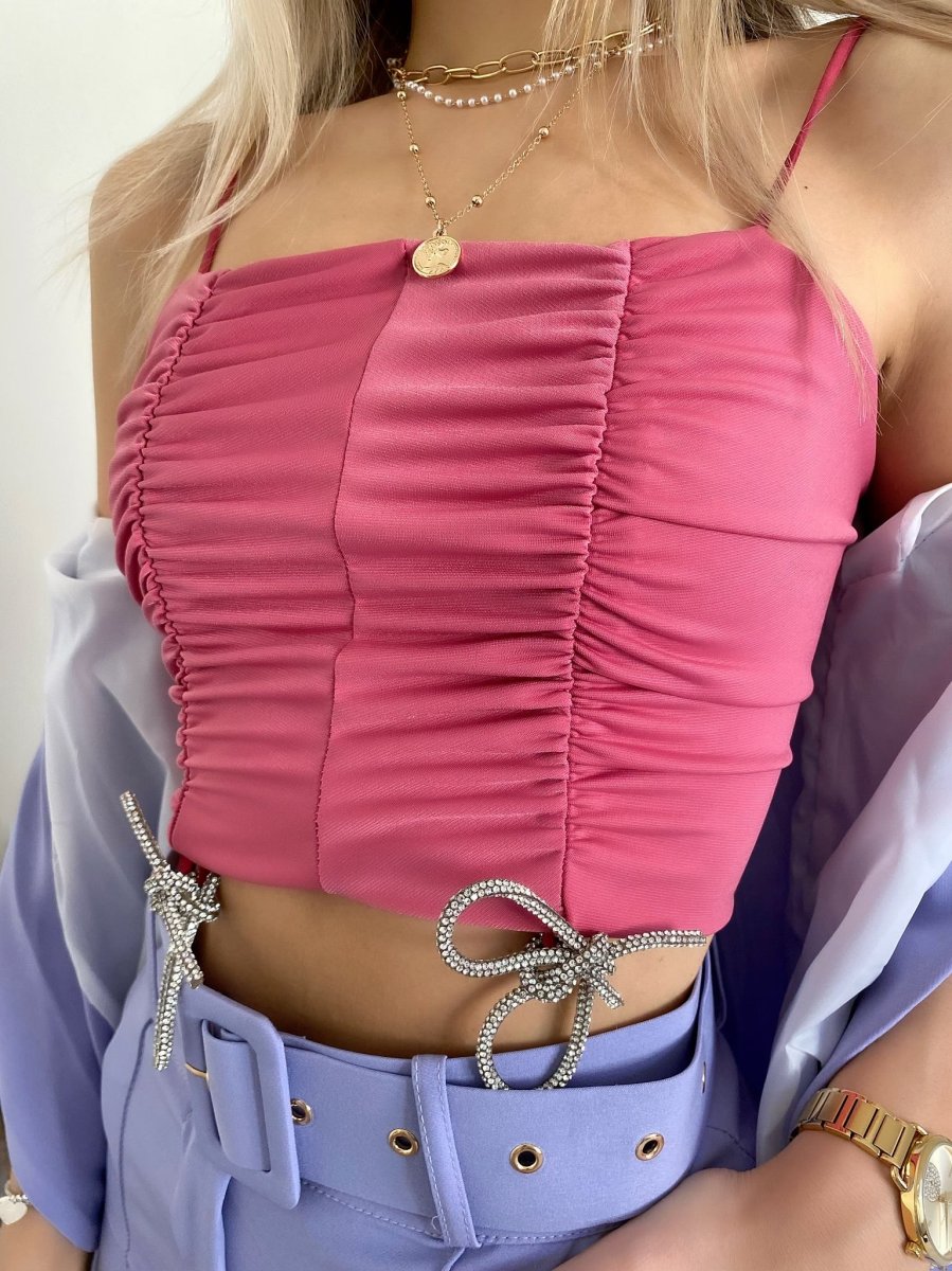 Top drappeggiato con fiocchetti rosa
