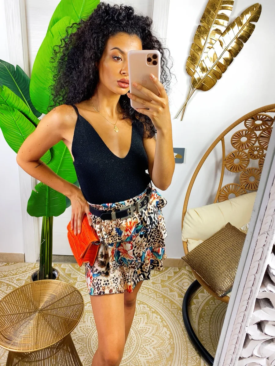 Top glitterato taglia unica tessuto elasticizzato