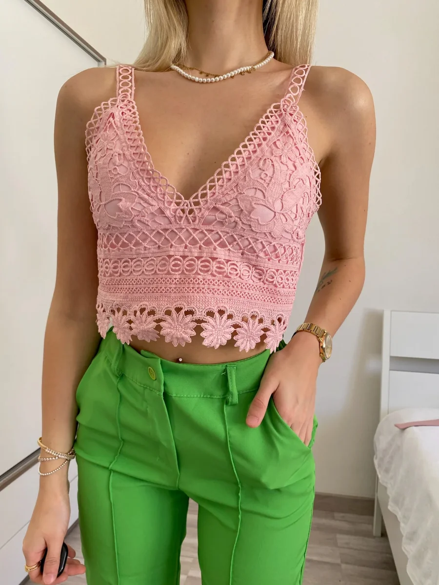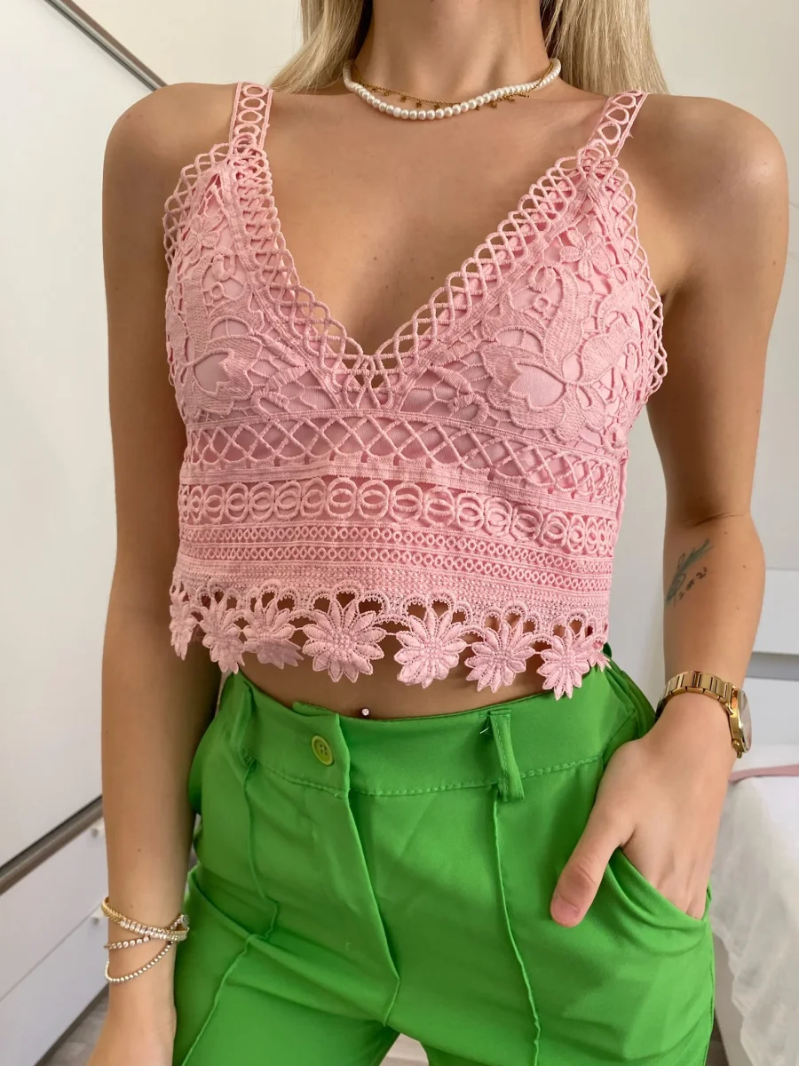 Top in pizzo con coppe imbottite. Elasticizzato nel dietro e tessuto di alta qualità