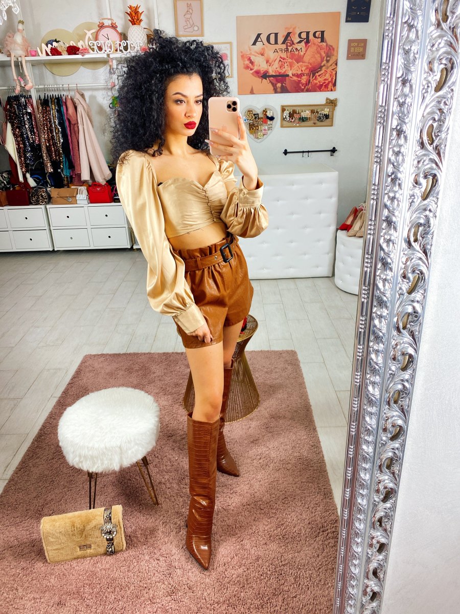 Top in morbidissimo raso lucido. Particolare nel corpetto e nelle maniche con dettagli composto da piccoli bottoncini. Consigliamo a ragazze con seno di prendere la taglia più grande