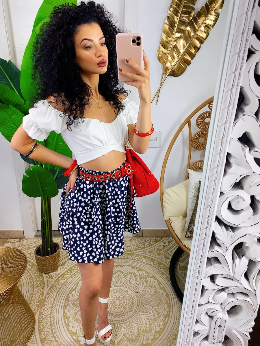 Top con coppe e schiena semi aperta. Tessuto elasticizzato ma adatto comunque a taglie piccole