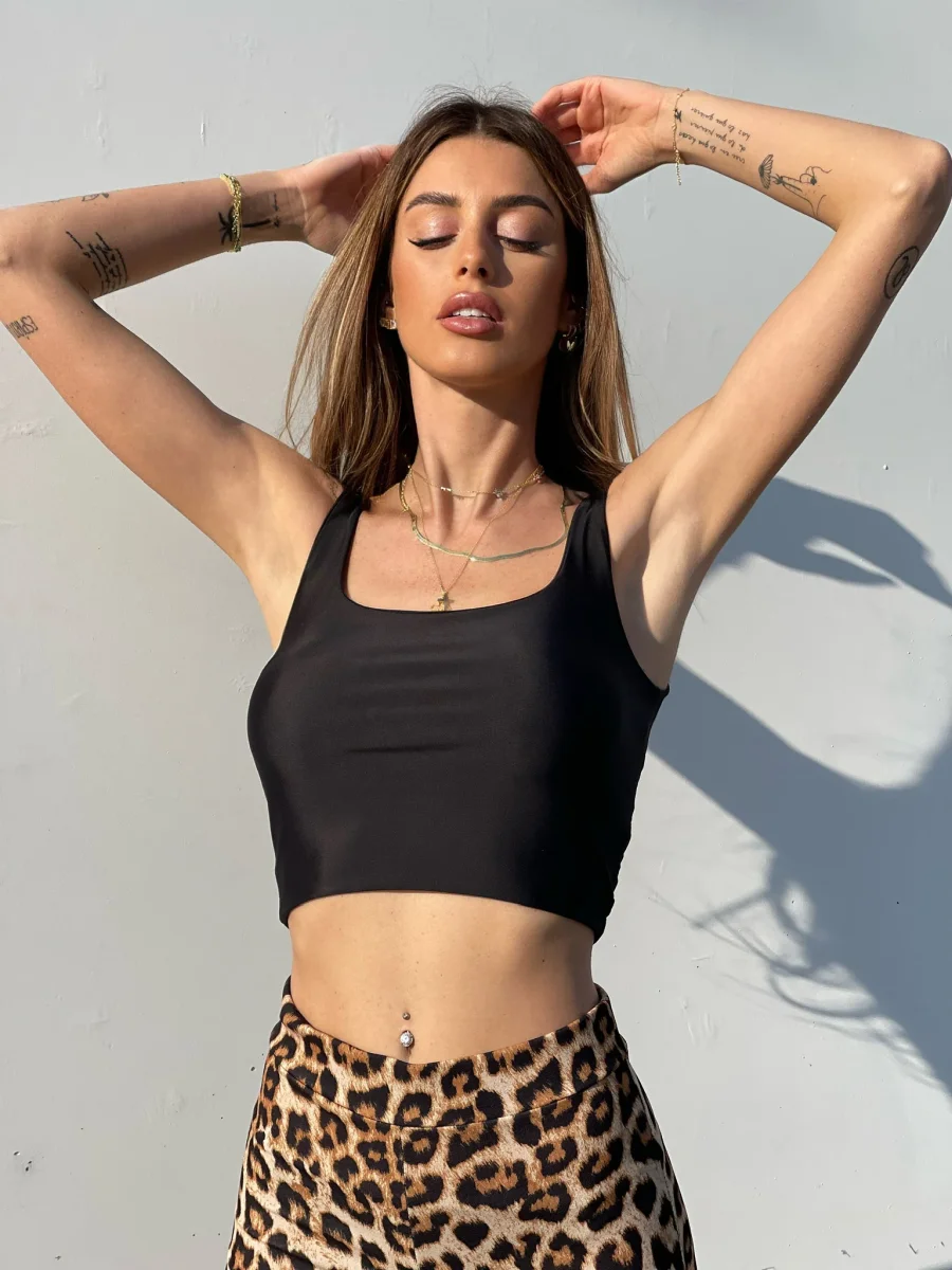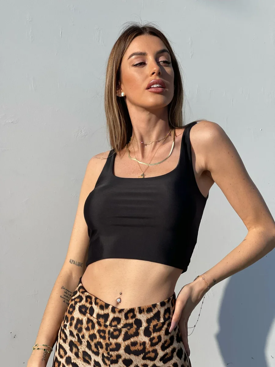 Top in lycra elasticizzata con coppe inserite. Taglia unica