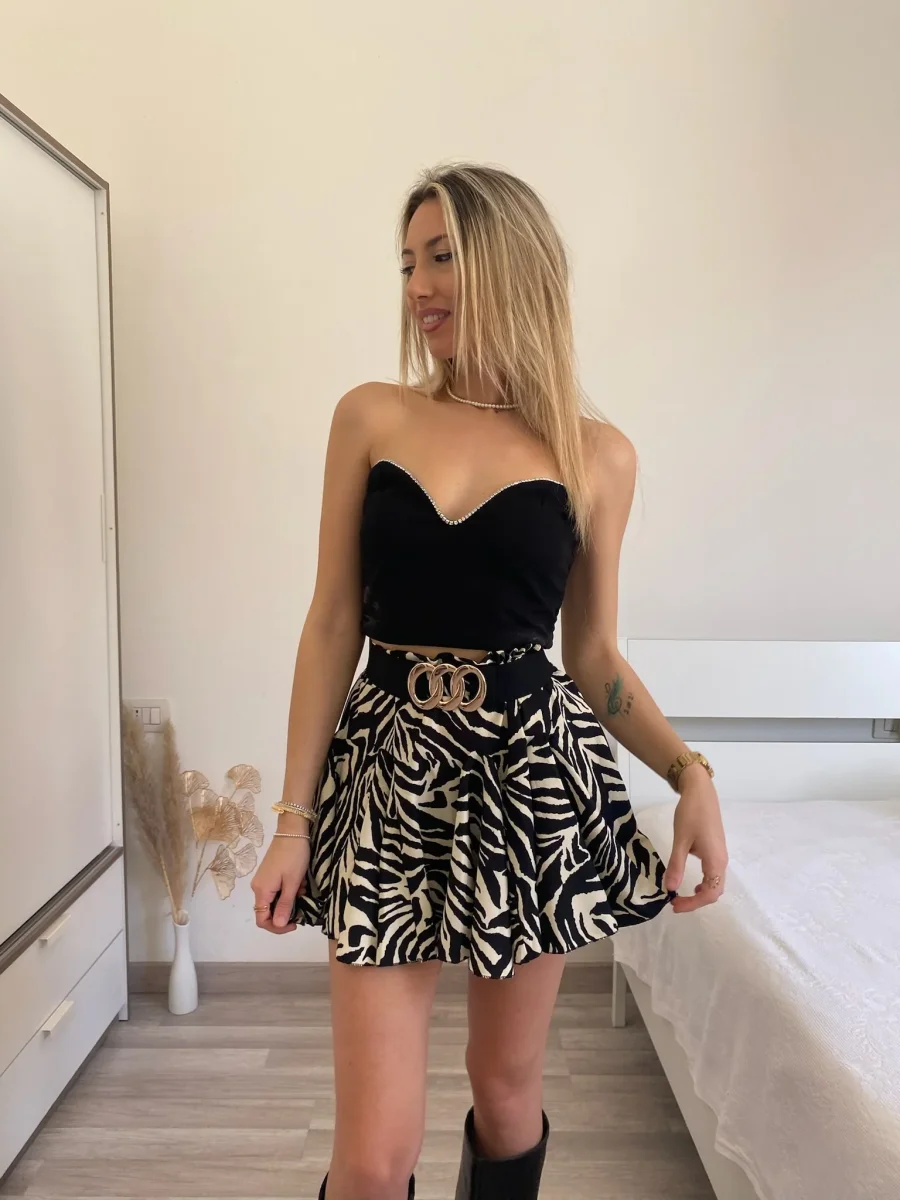 Top a fascia con scollo a cuore e coppe con bordino in strass