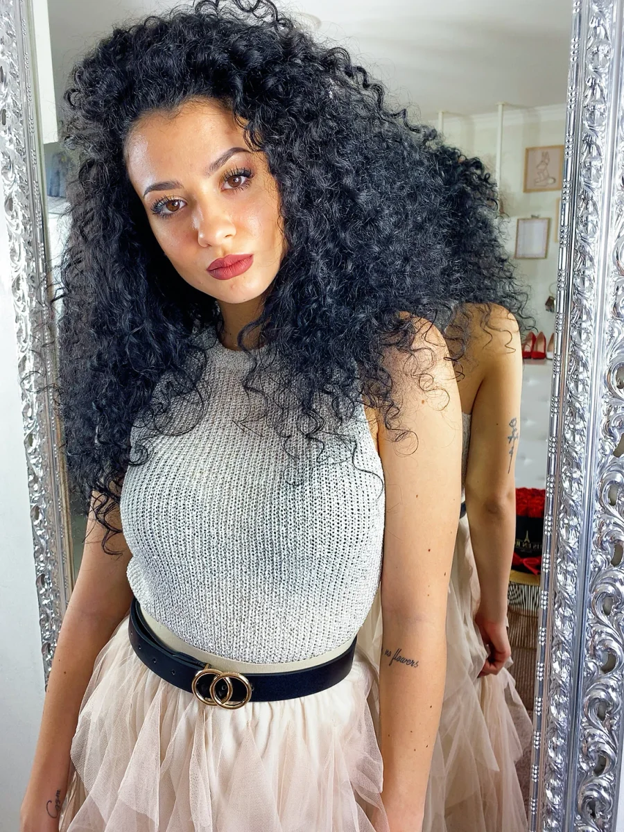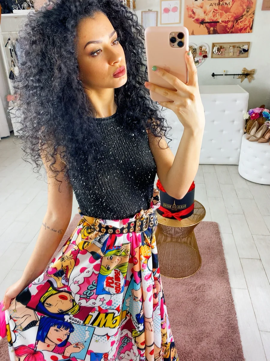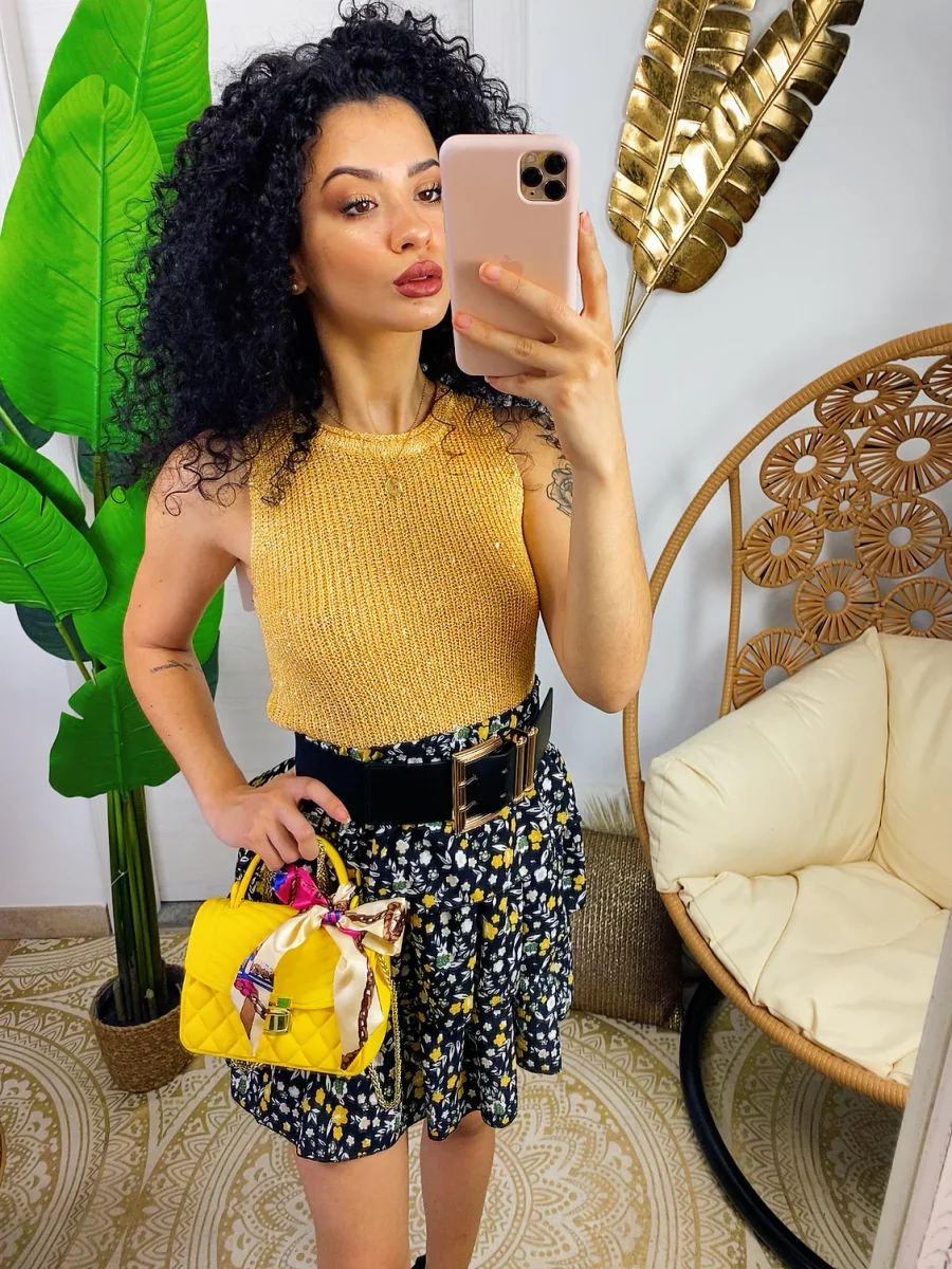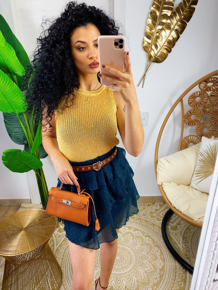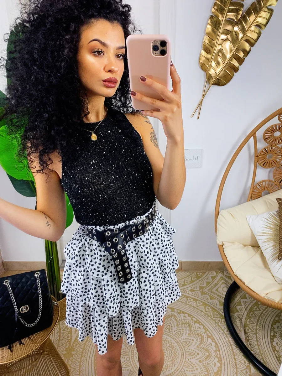 Top in cotone comodo è morbido. Arricchito da paillette alta qualità