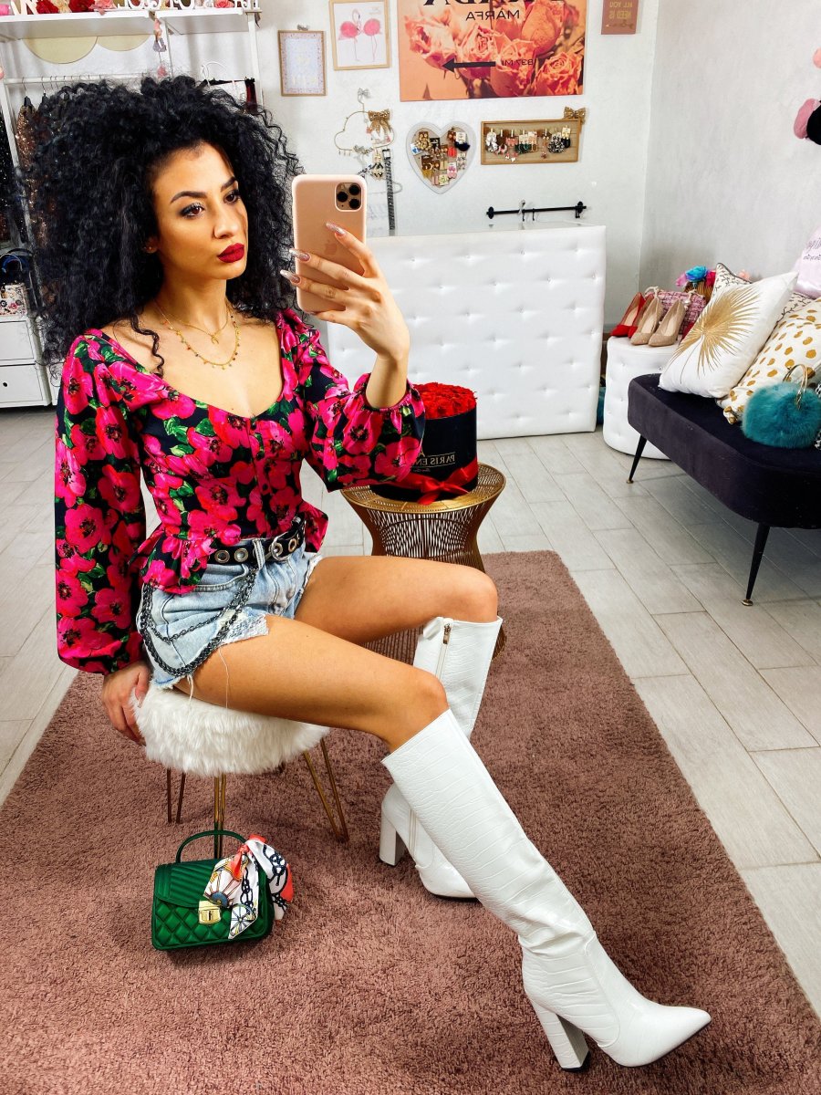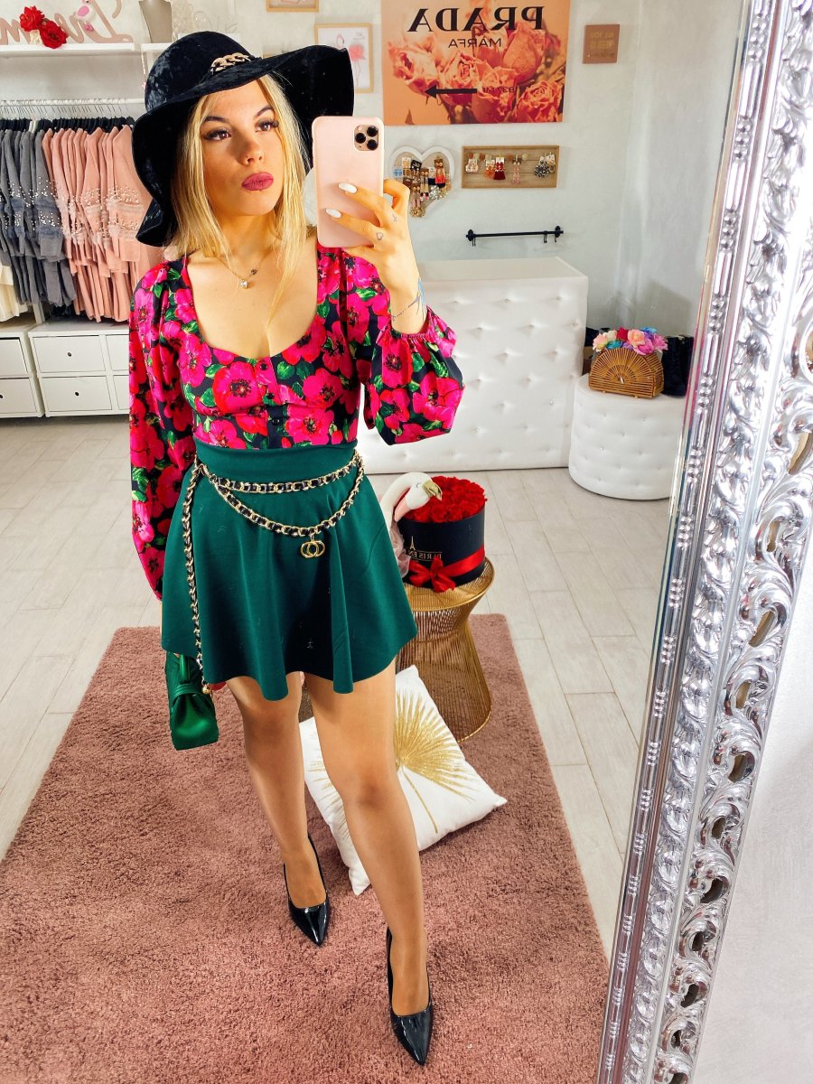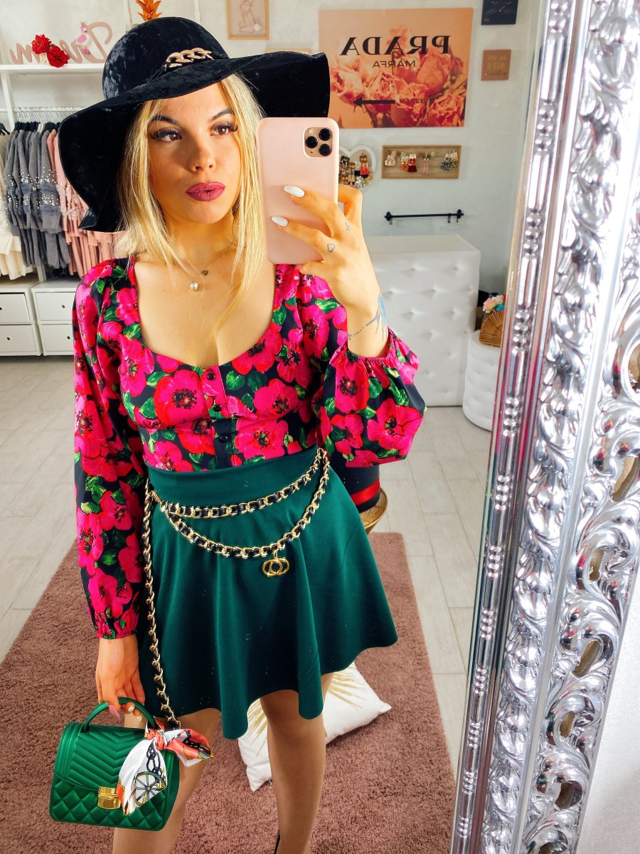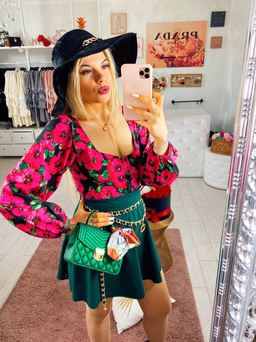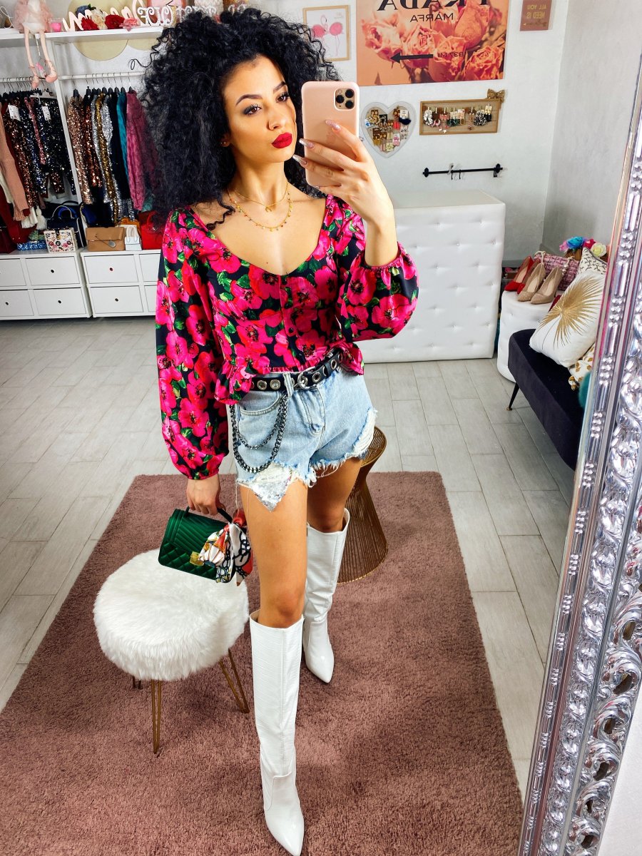 Topcrop con fiori fuxia