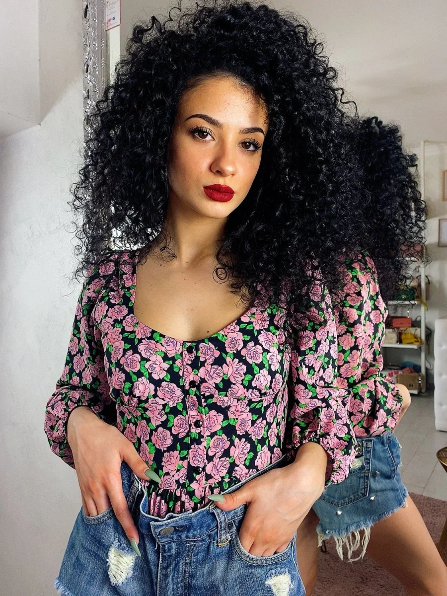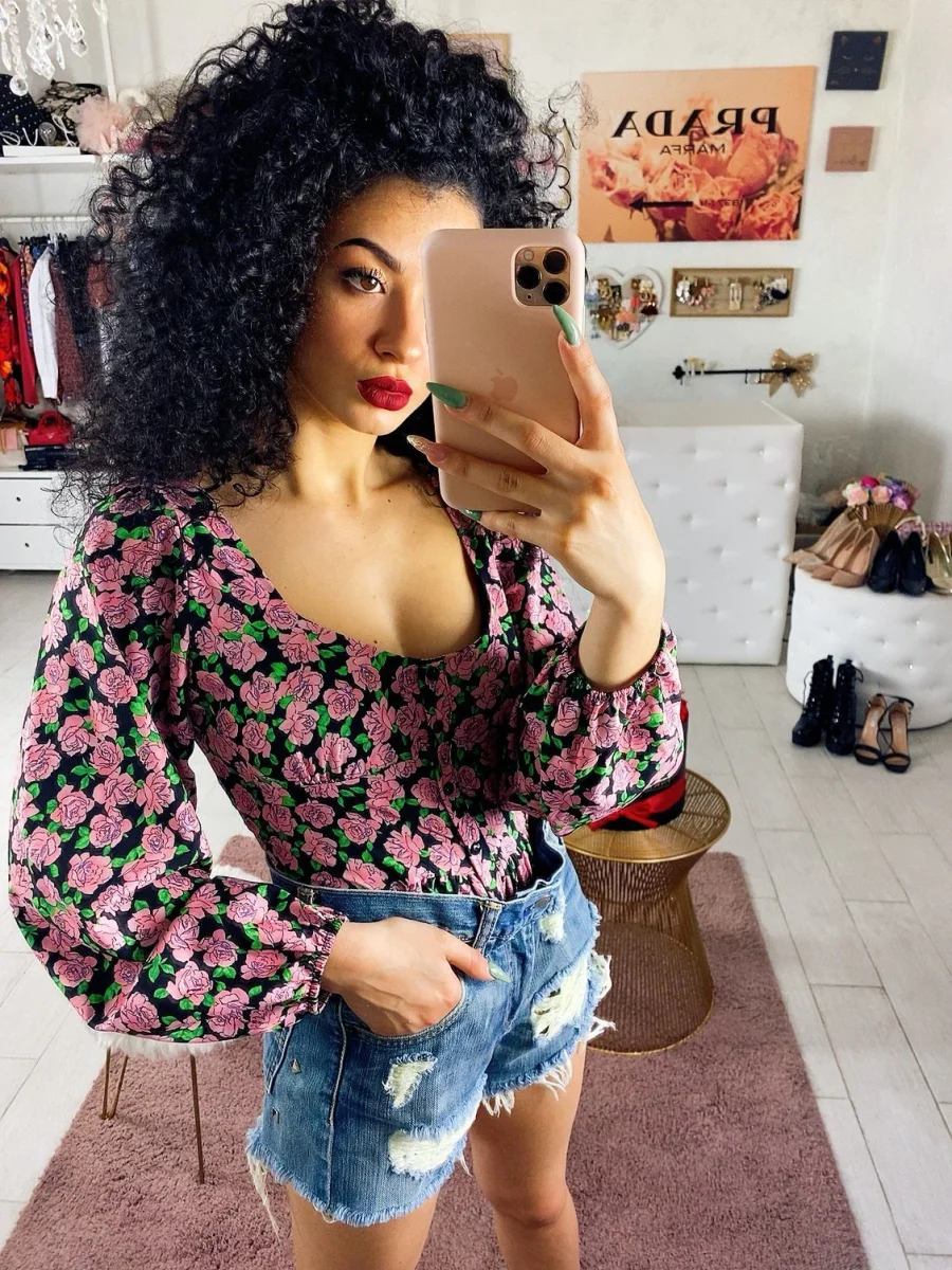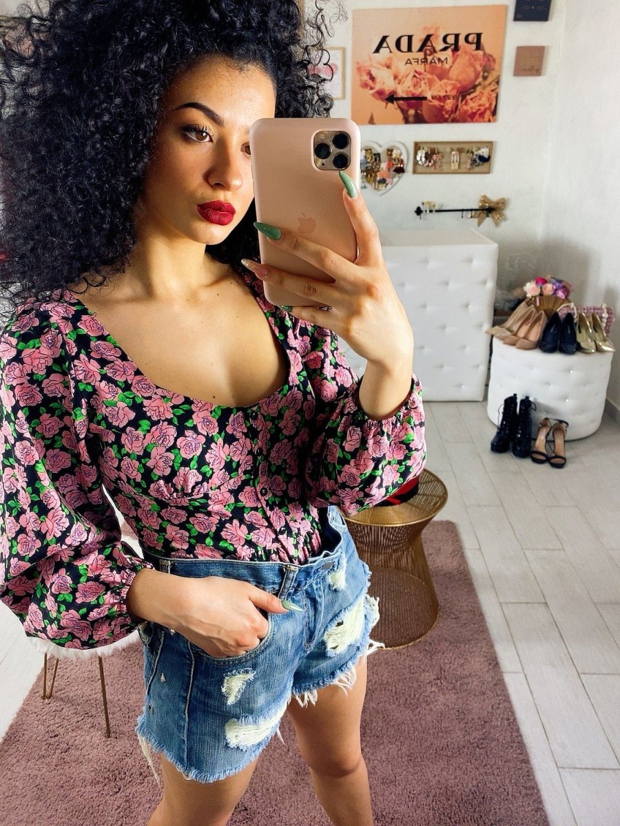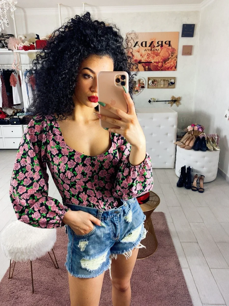 Top in tessuto liscio con stampa a fantasia fiorata. Bottoncini nel davanti e elastico nel dietro