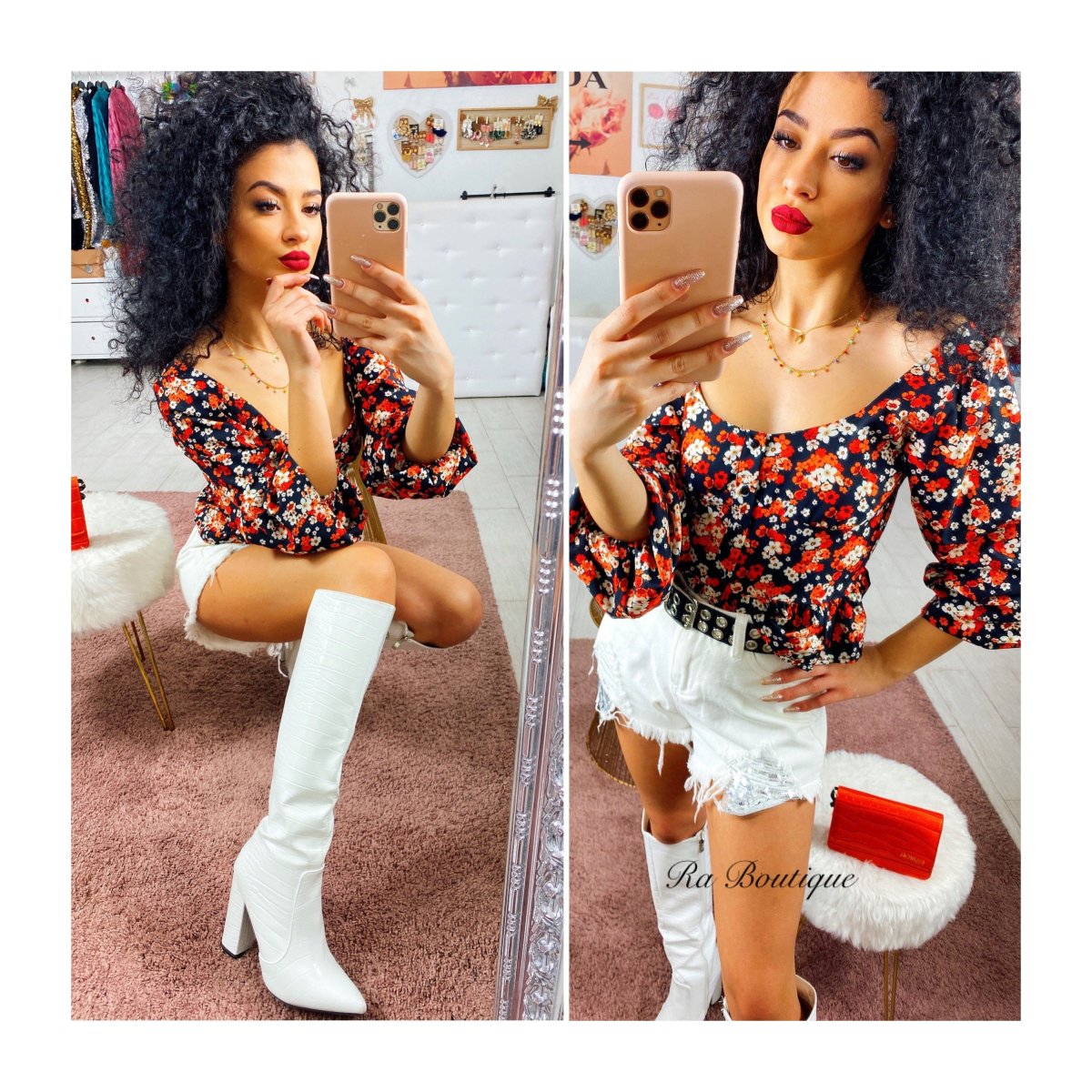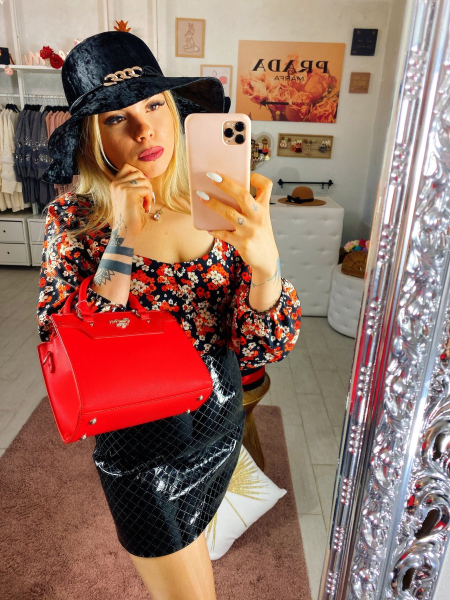 Topcrop con fiori rossi