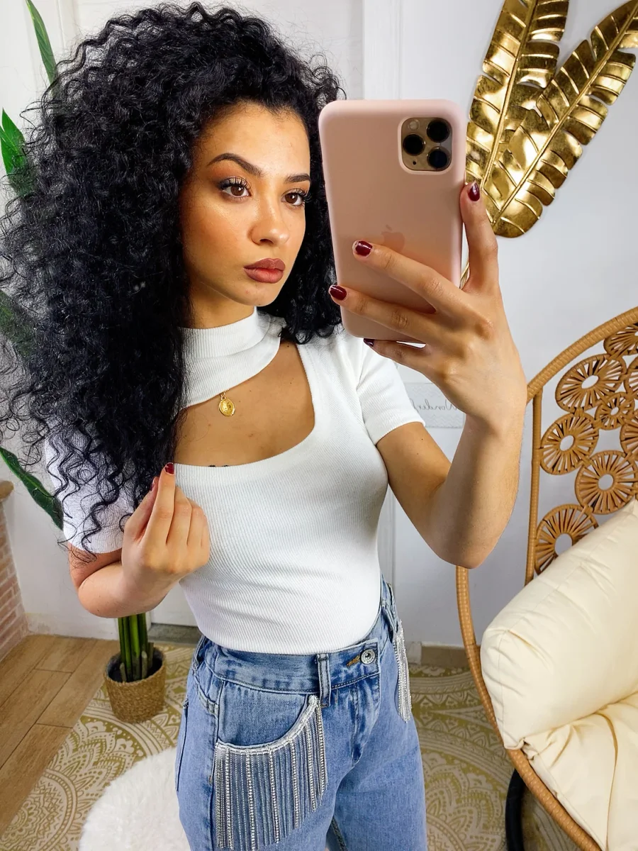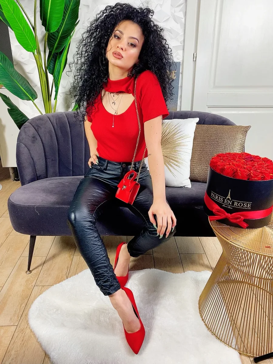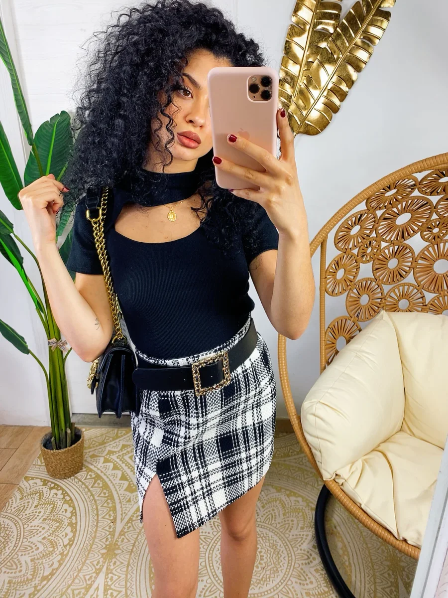 Topcrop con spacco centrale collo alto In tessuto primaverile disponibile in 3 colori rosso,nero, bianco.