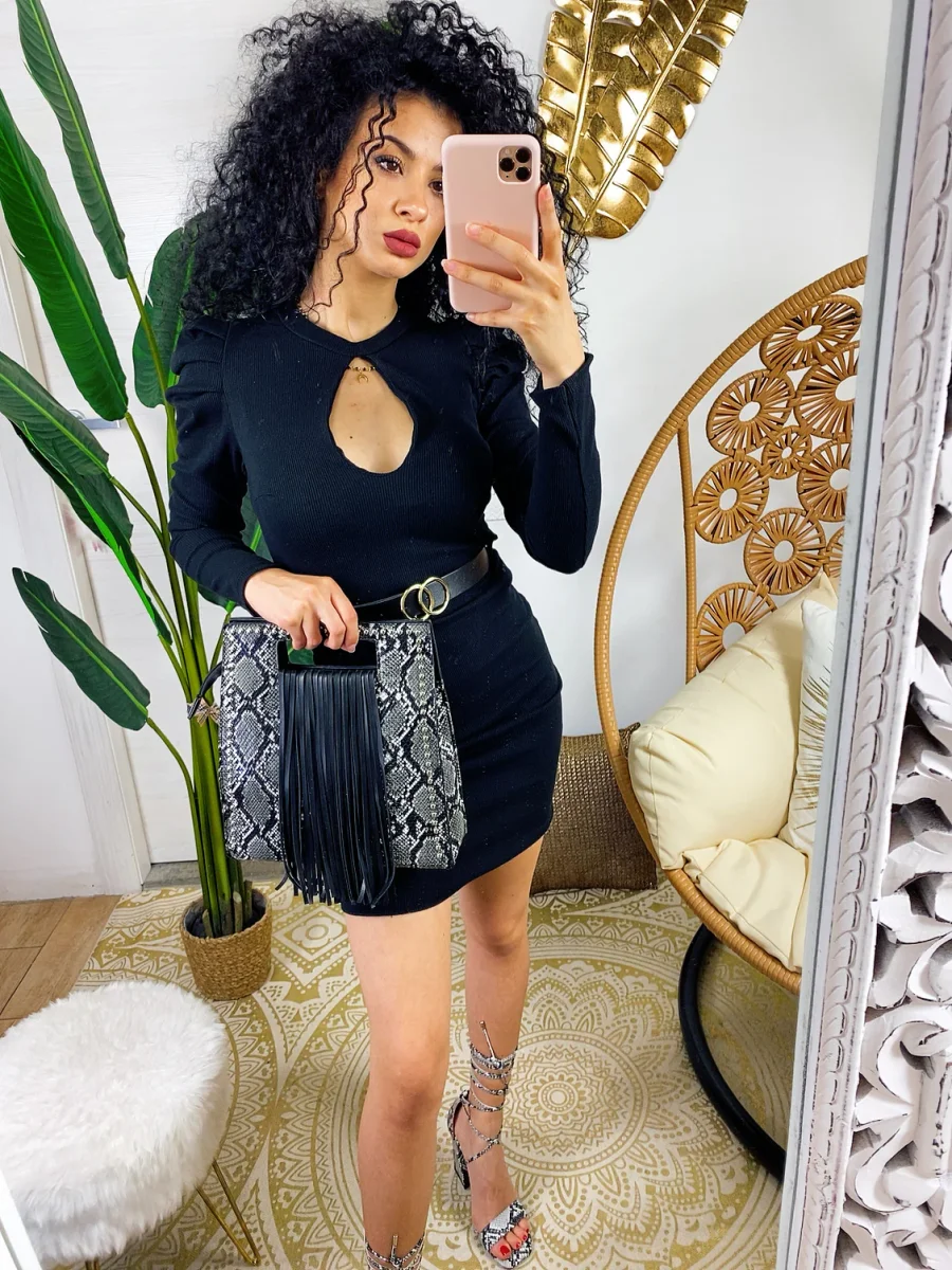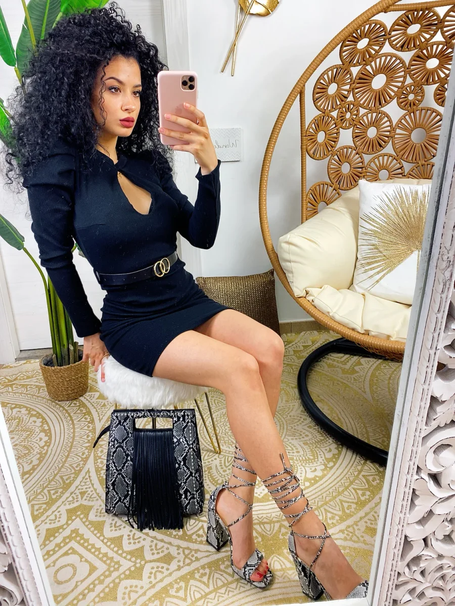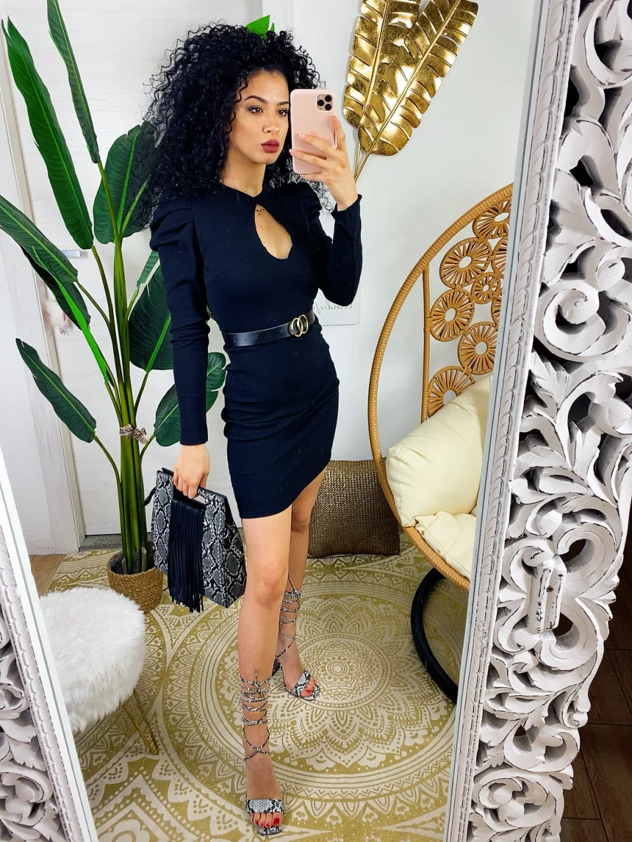 Abito in cotone a costine con maniche lunghe e scollo sul davanti. Cintura inclusa nell’abito.