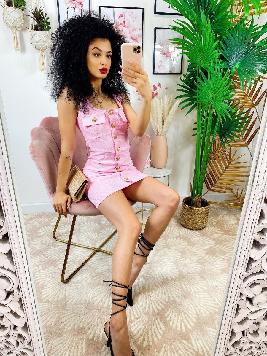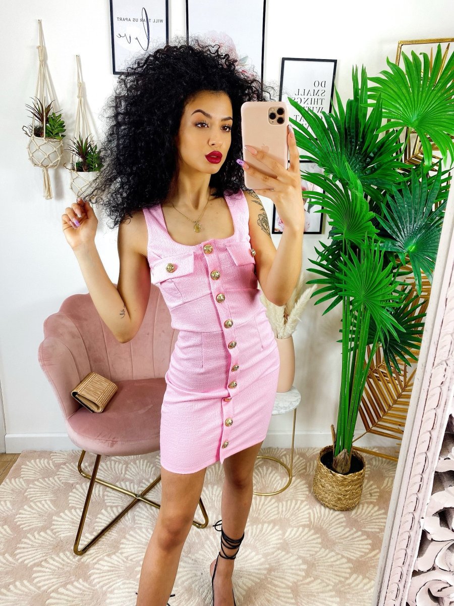 Tubino aderente con taschino e bottoni Gold rosa