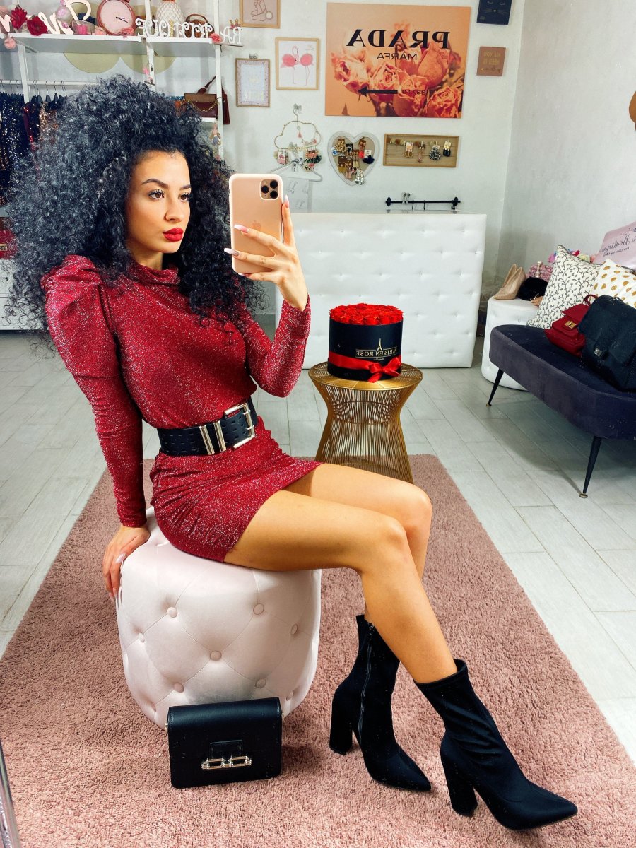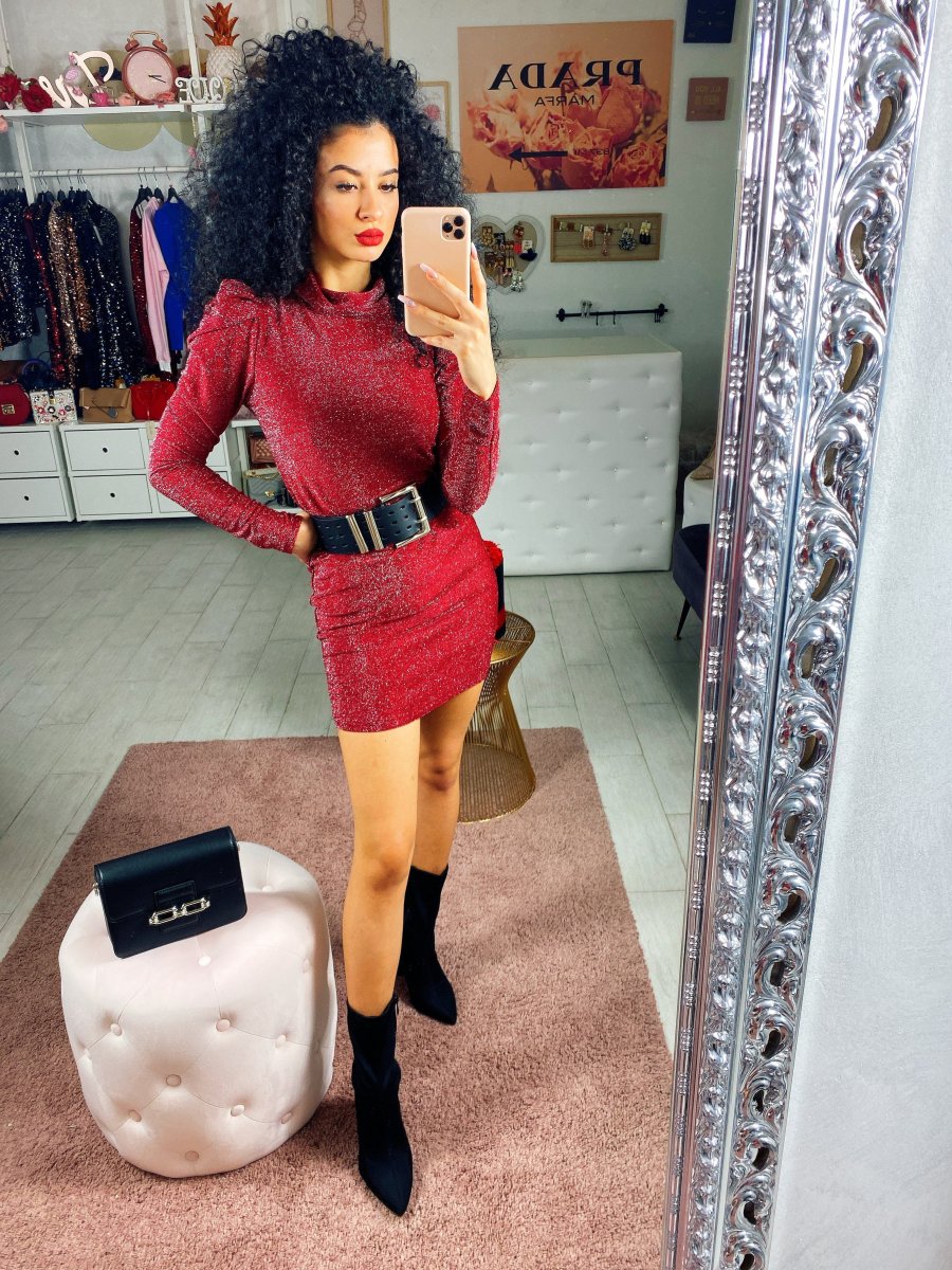Tubino in tessuto glitterato a collo alto. Tessuto molto elasticizzato comodo