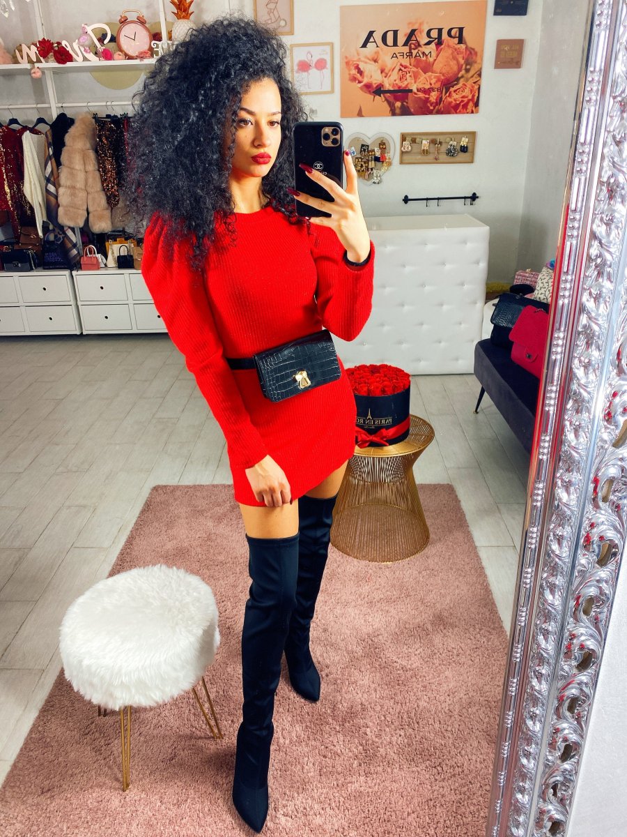 Tubino in cotone in tessuto glitterato a manica lunga. Tessuto molto morbido e elasticizzato
