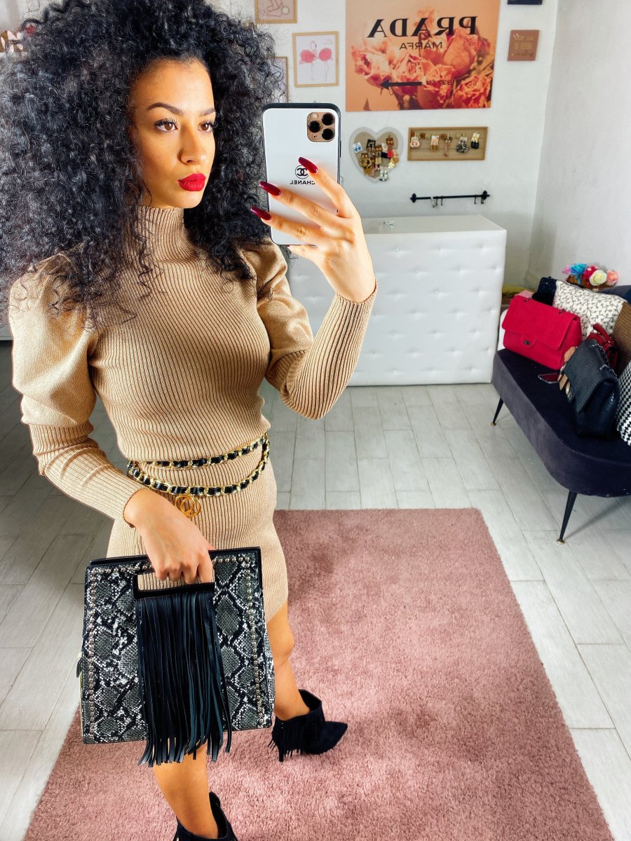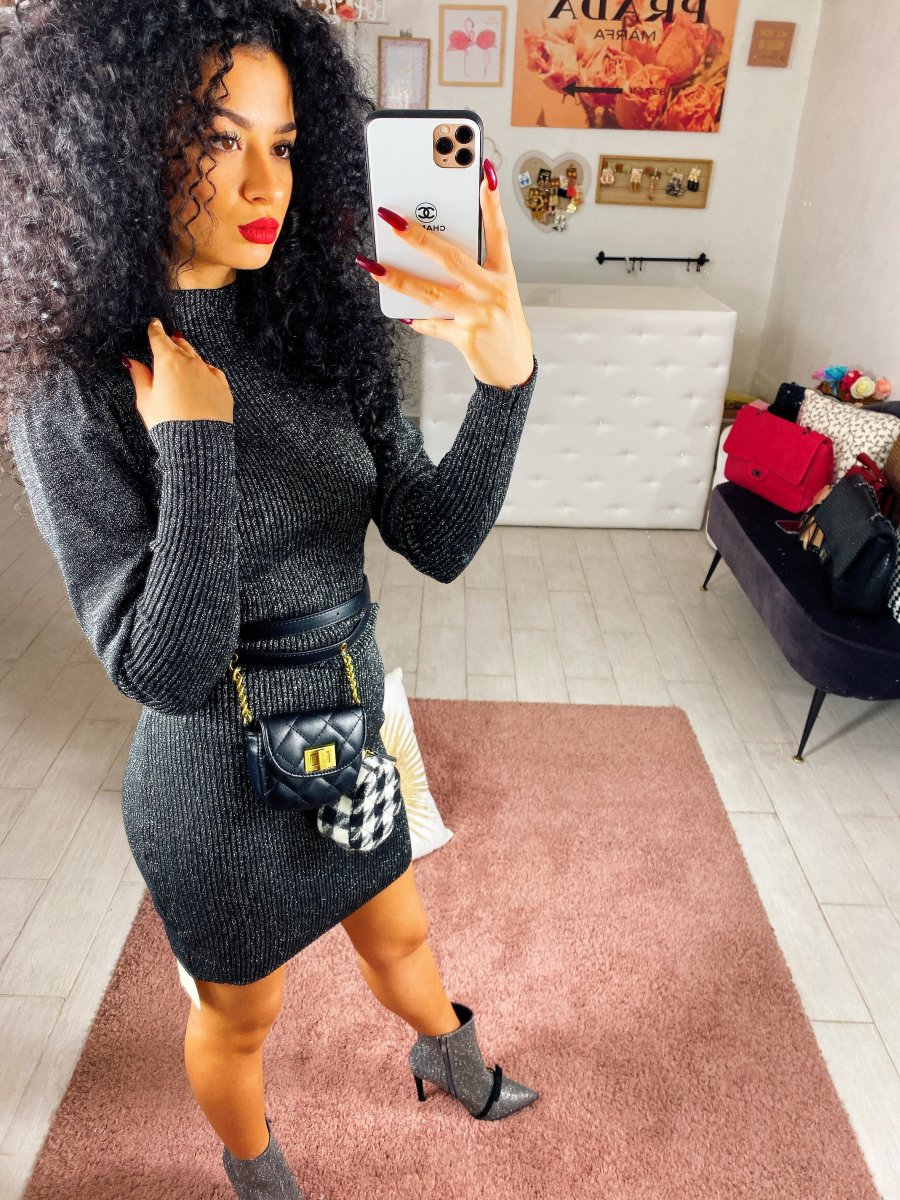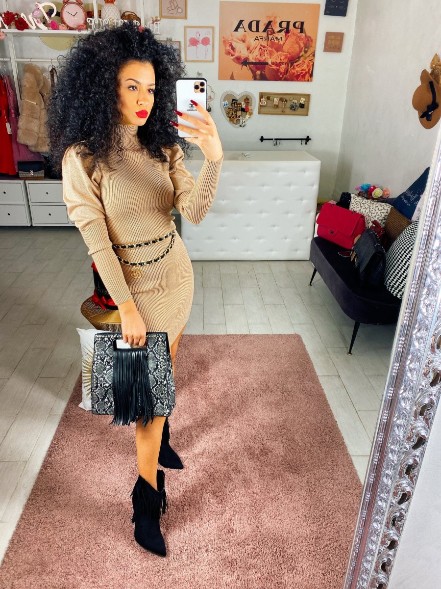 Tubino aderente in tessuto a costine elasticizzato. Glitterato e tessuto molto morbido.