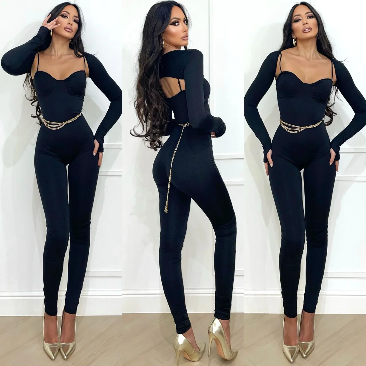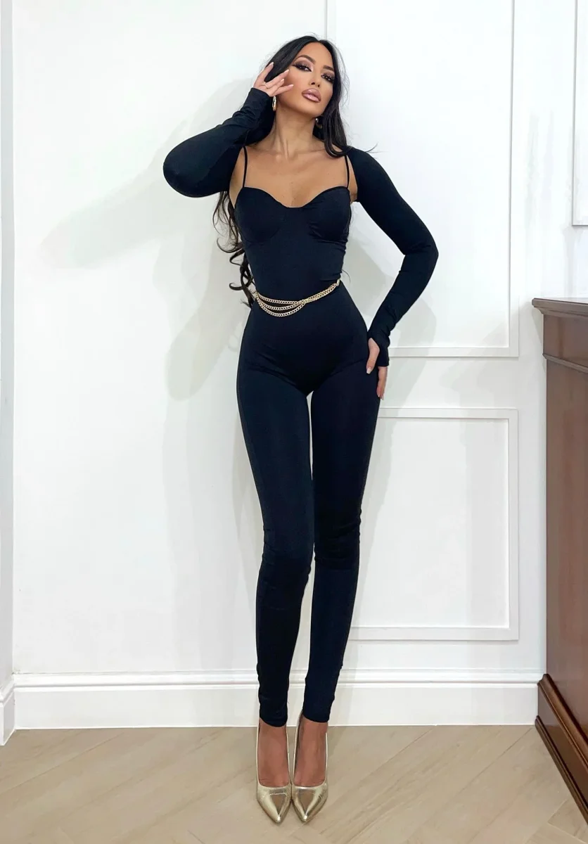 Tuta aderente in lycra a bretellina con coppe e coprispalle