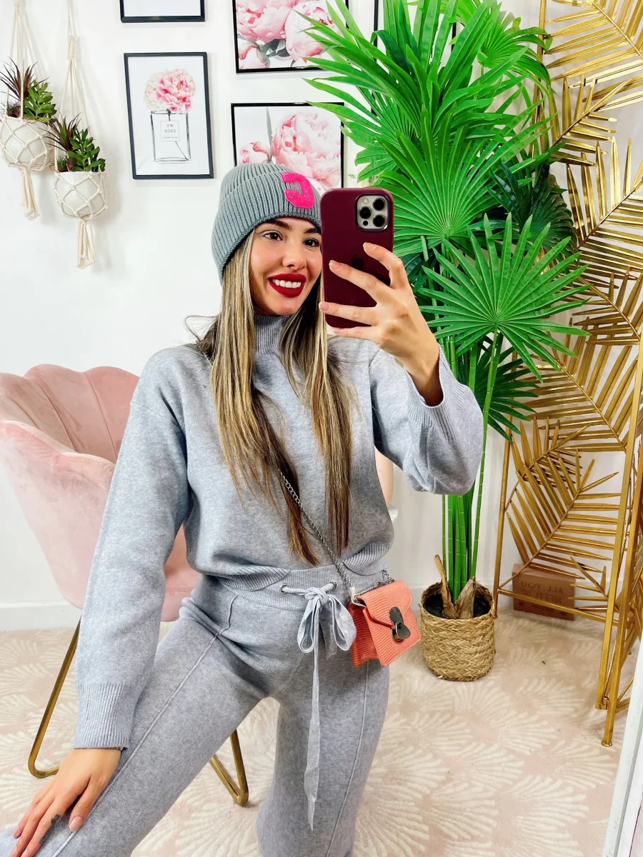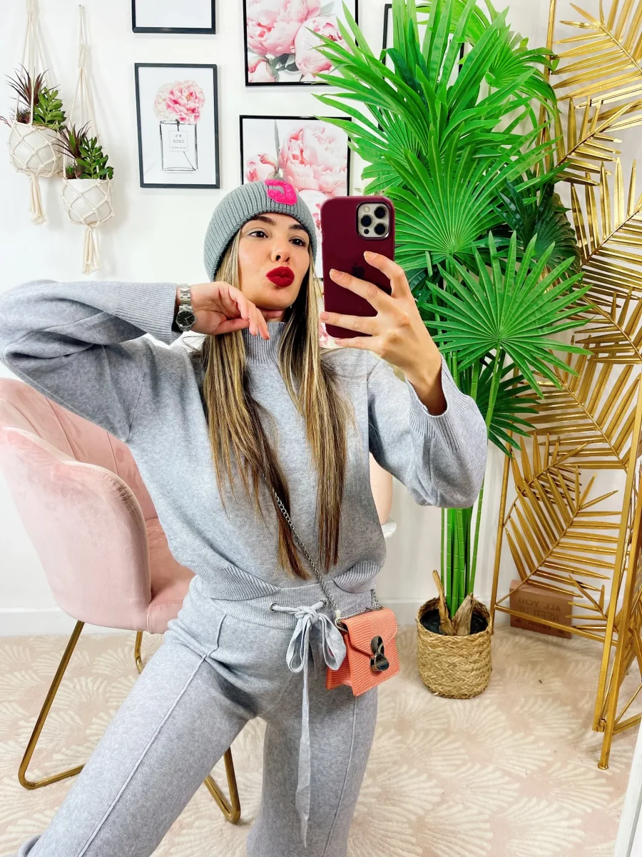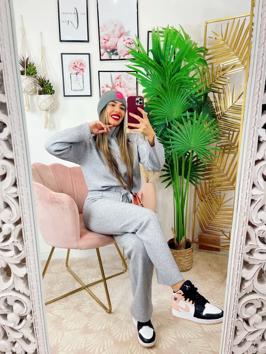 Tuta completa grigia composta da maglia e pantalone in tessuto elasticizzato comodo e morbido. Perfetto per la stagione invernale