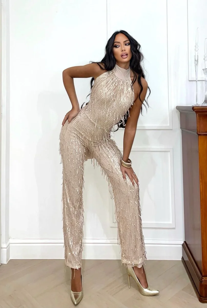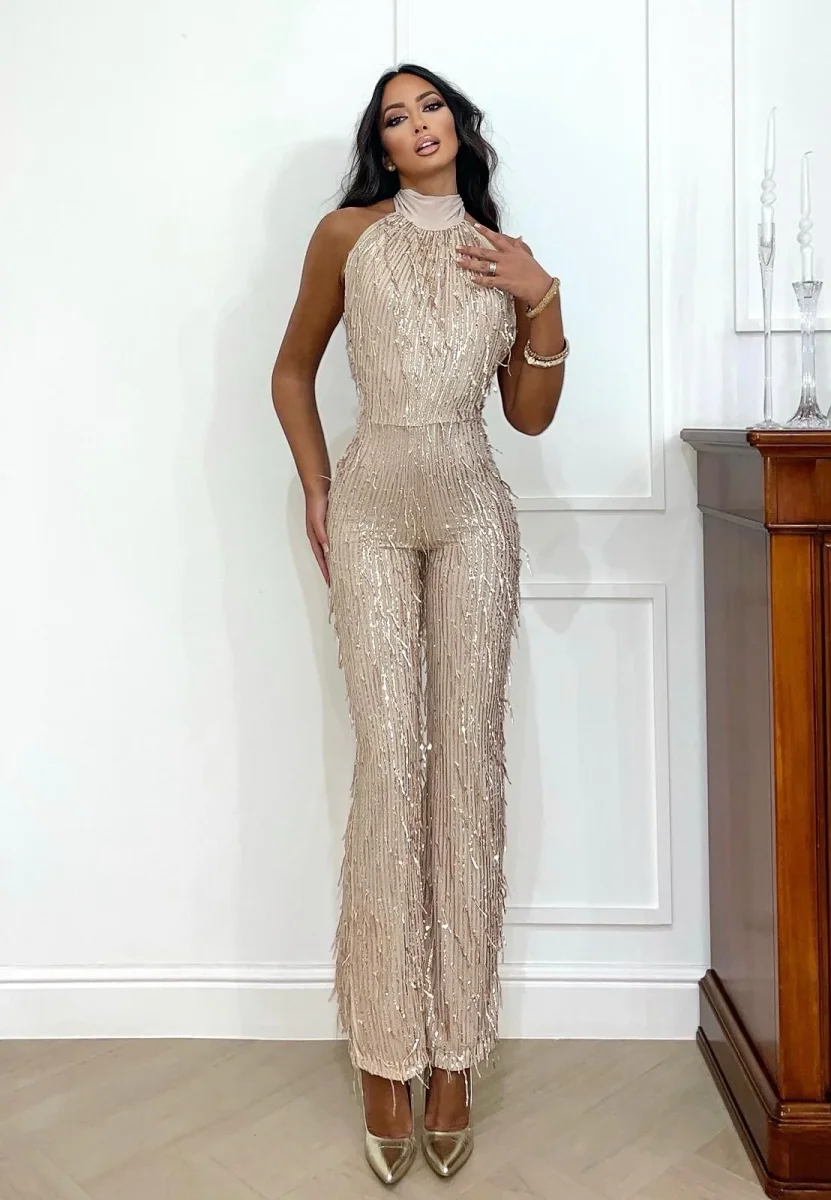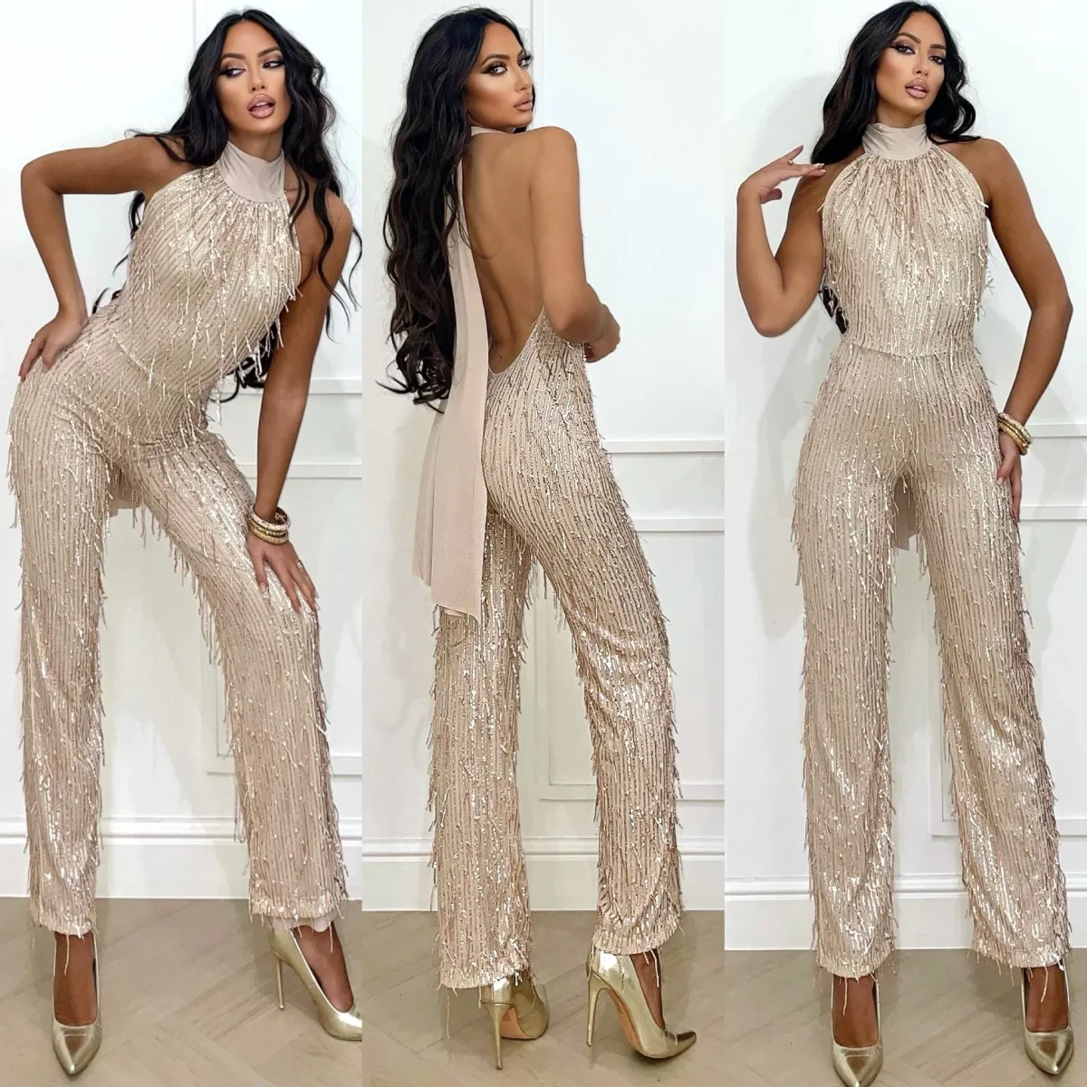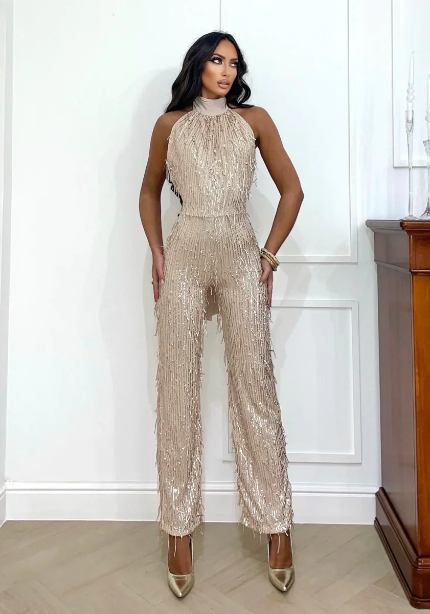 Tuta in tessuto aderente e elasticizzato con fodera, schiena semi aperto e laccio al collo