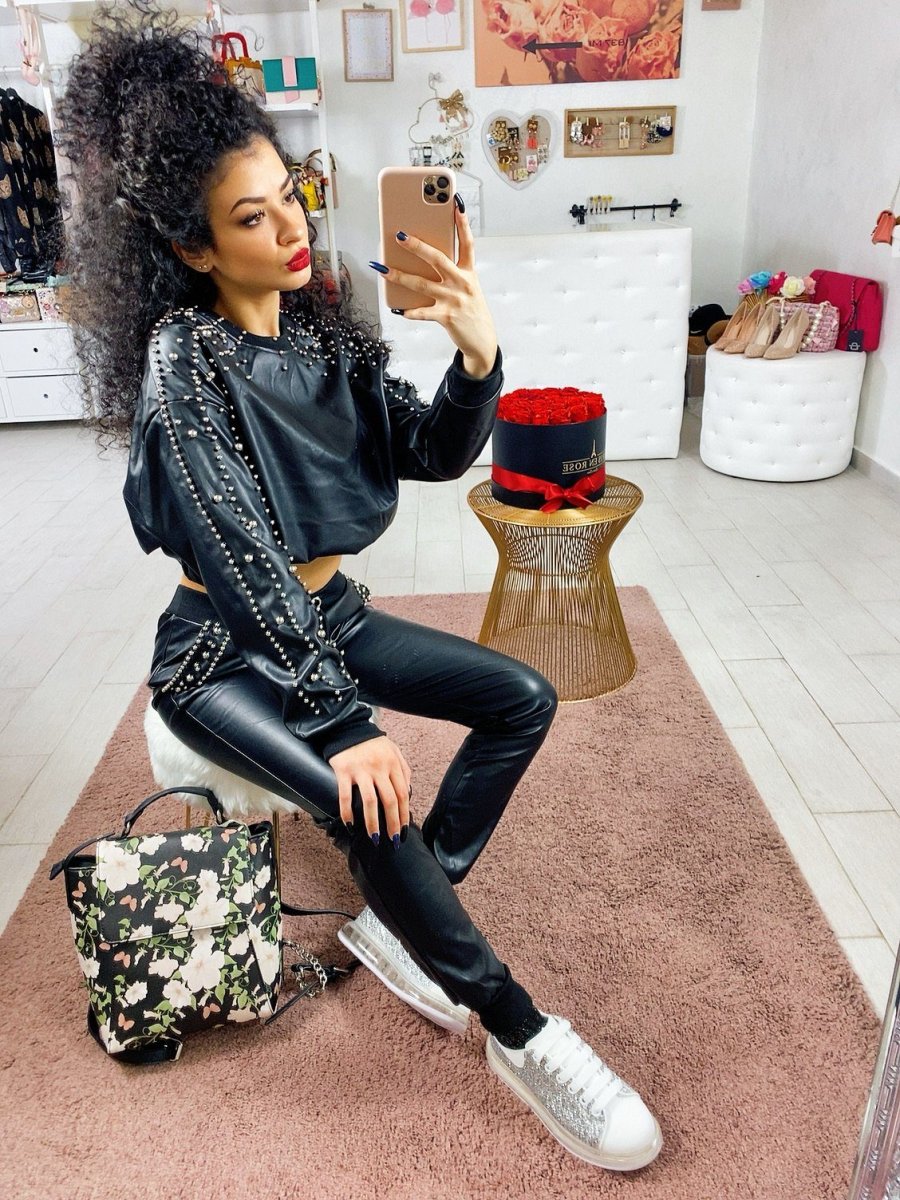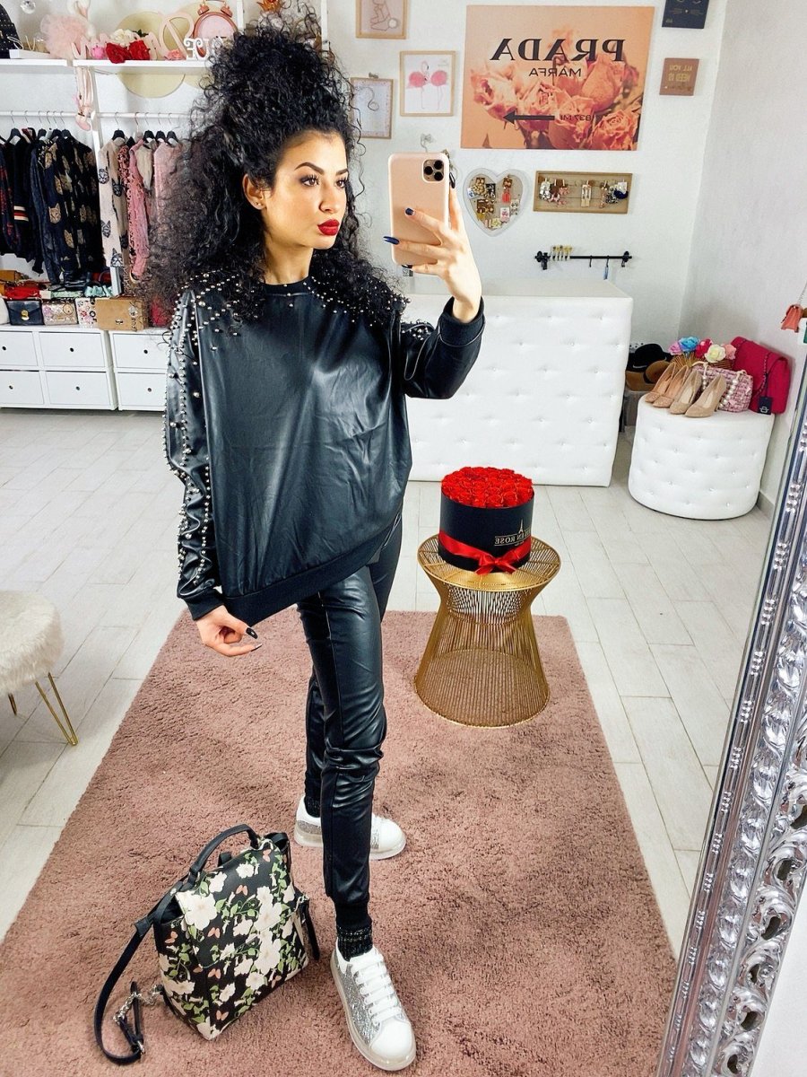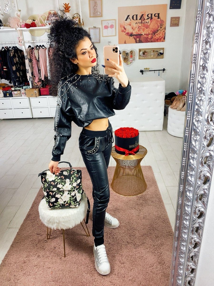 Tuta due pezzi composta da felpina e pantalone con borchie argento. Usali insieme o separatamente