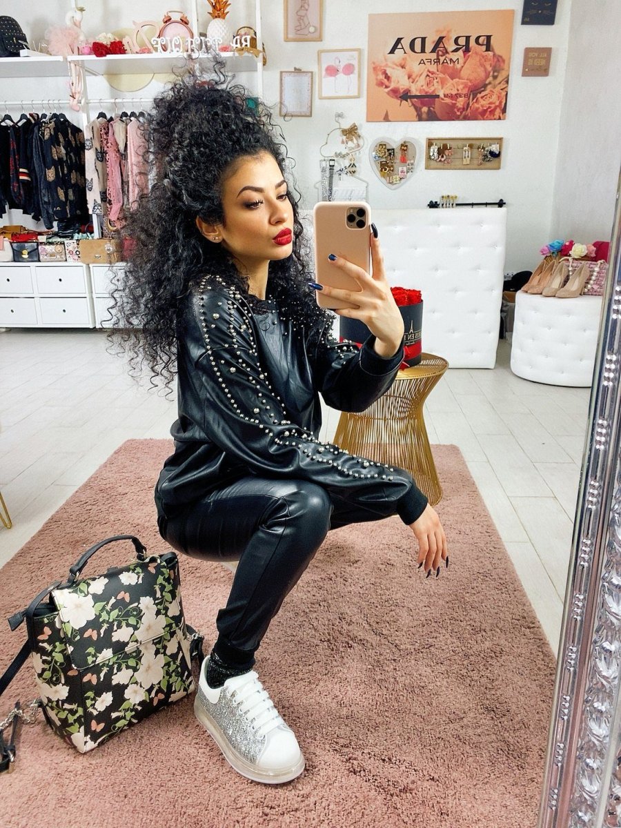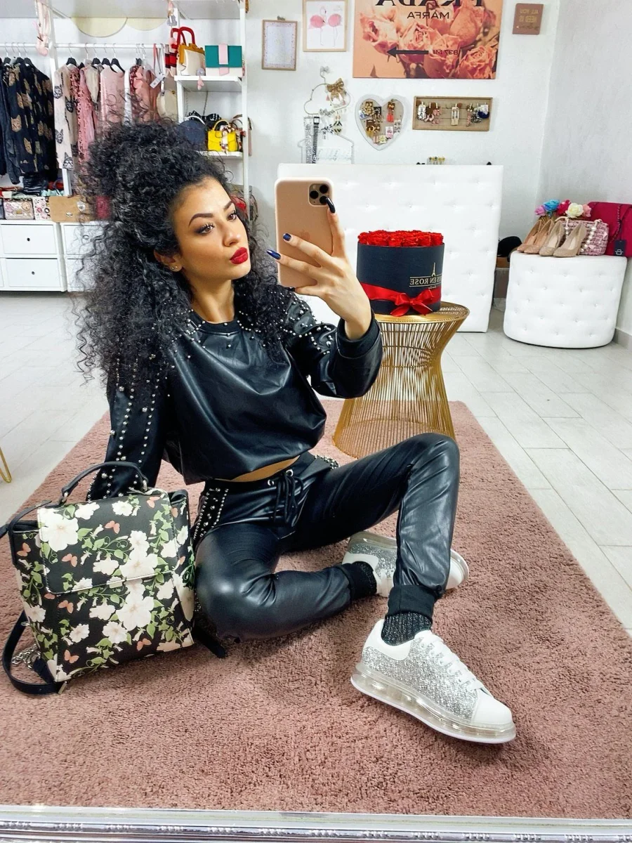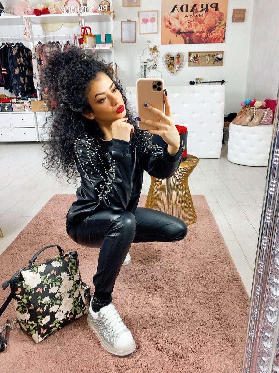 Tuta due pezzi composta da felpina e pantalone con borchie argento. Usali insieme o separatamente
