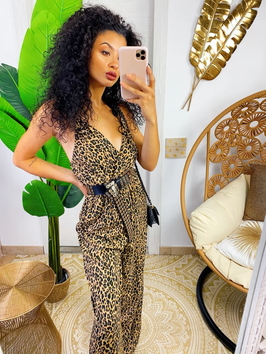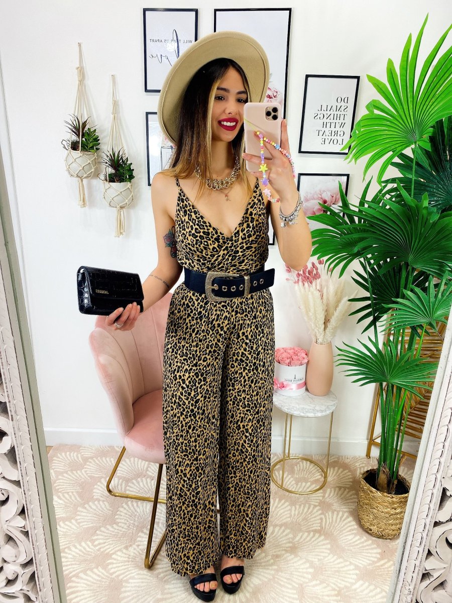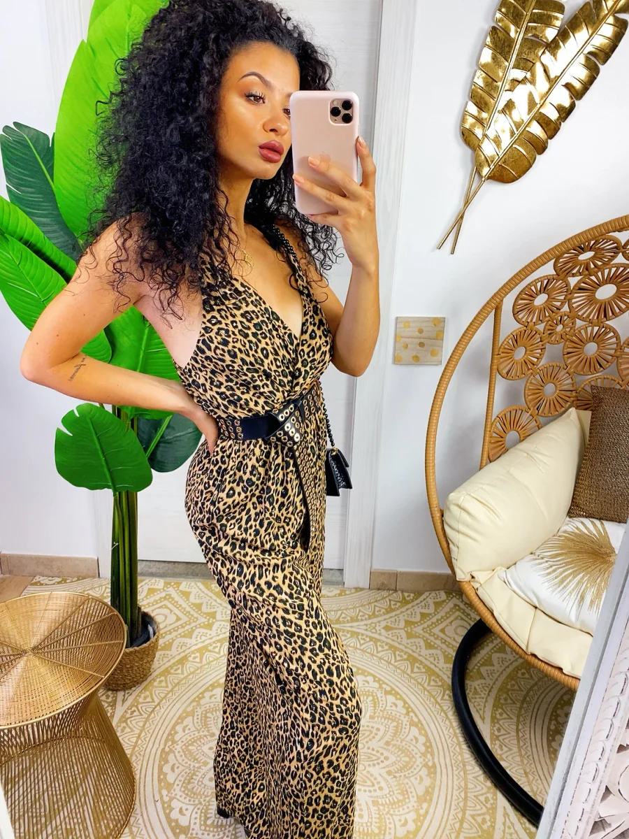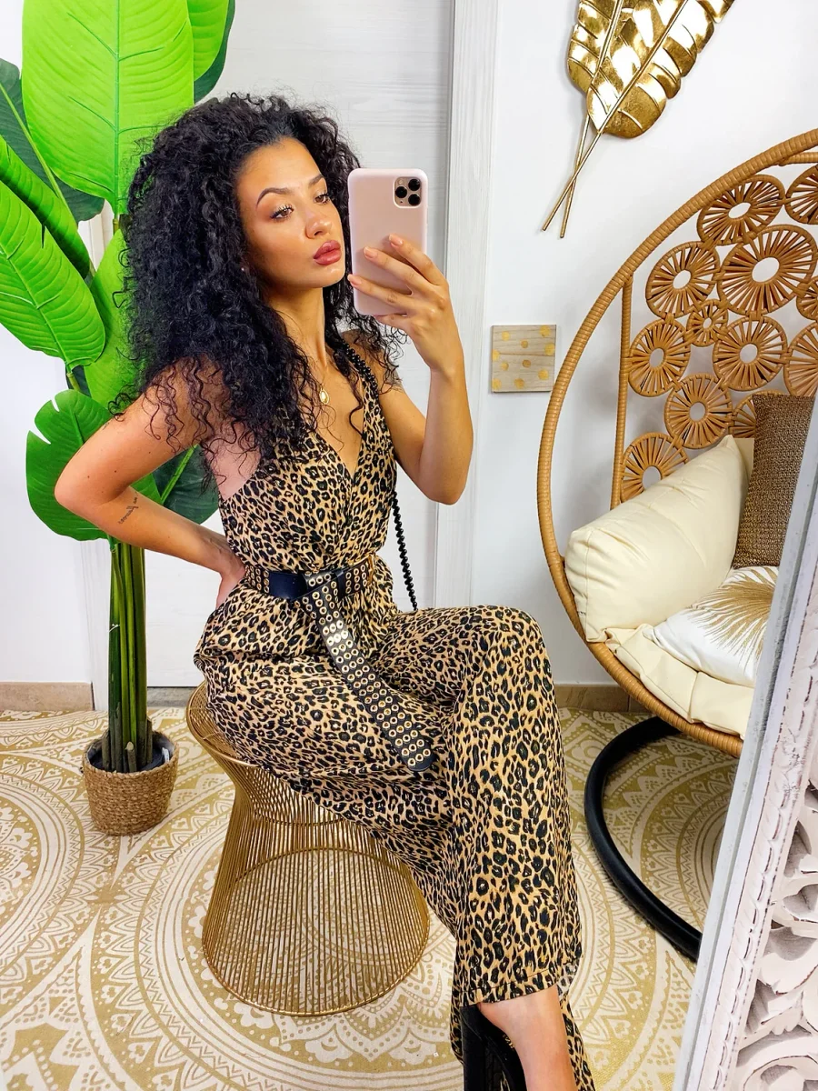 Particolarissima tuta intera con elastico in vita in tessuto leggero a fantasia maculata. Taglia unica.