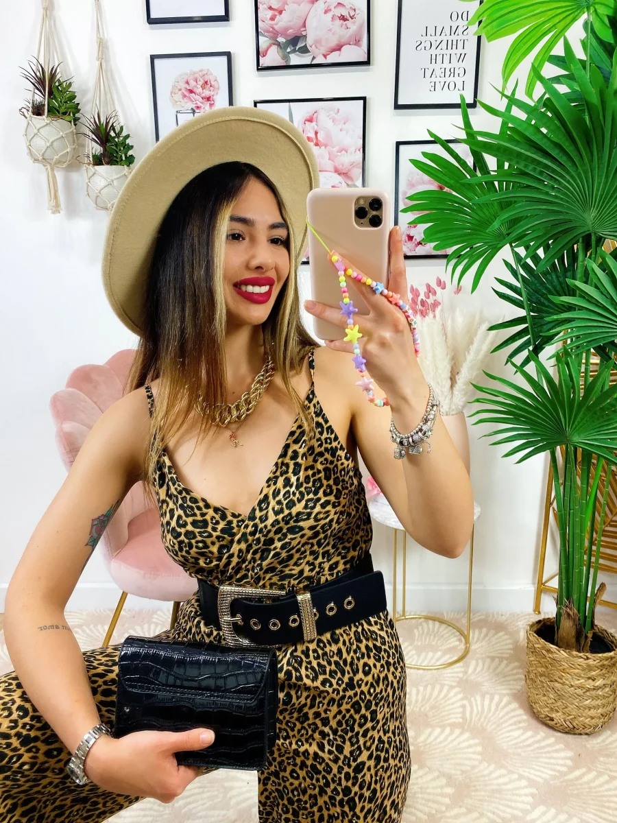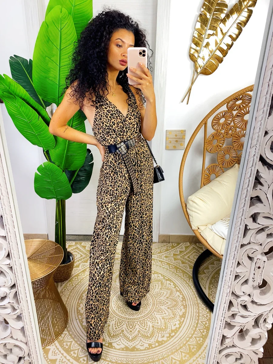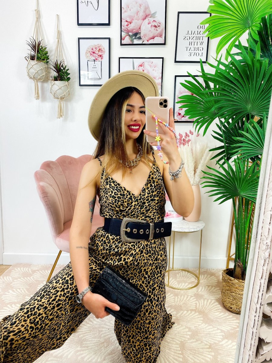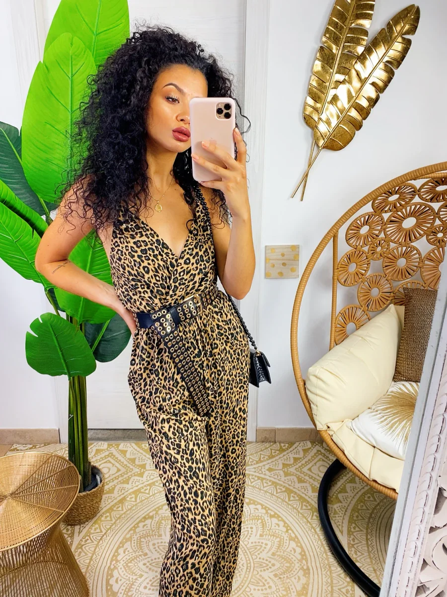 Particolarissima tuta intera con elastico in vita in tessuto leggero a fantasia maculata. Taglia unica.