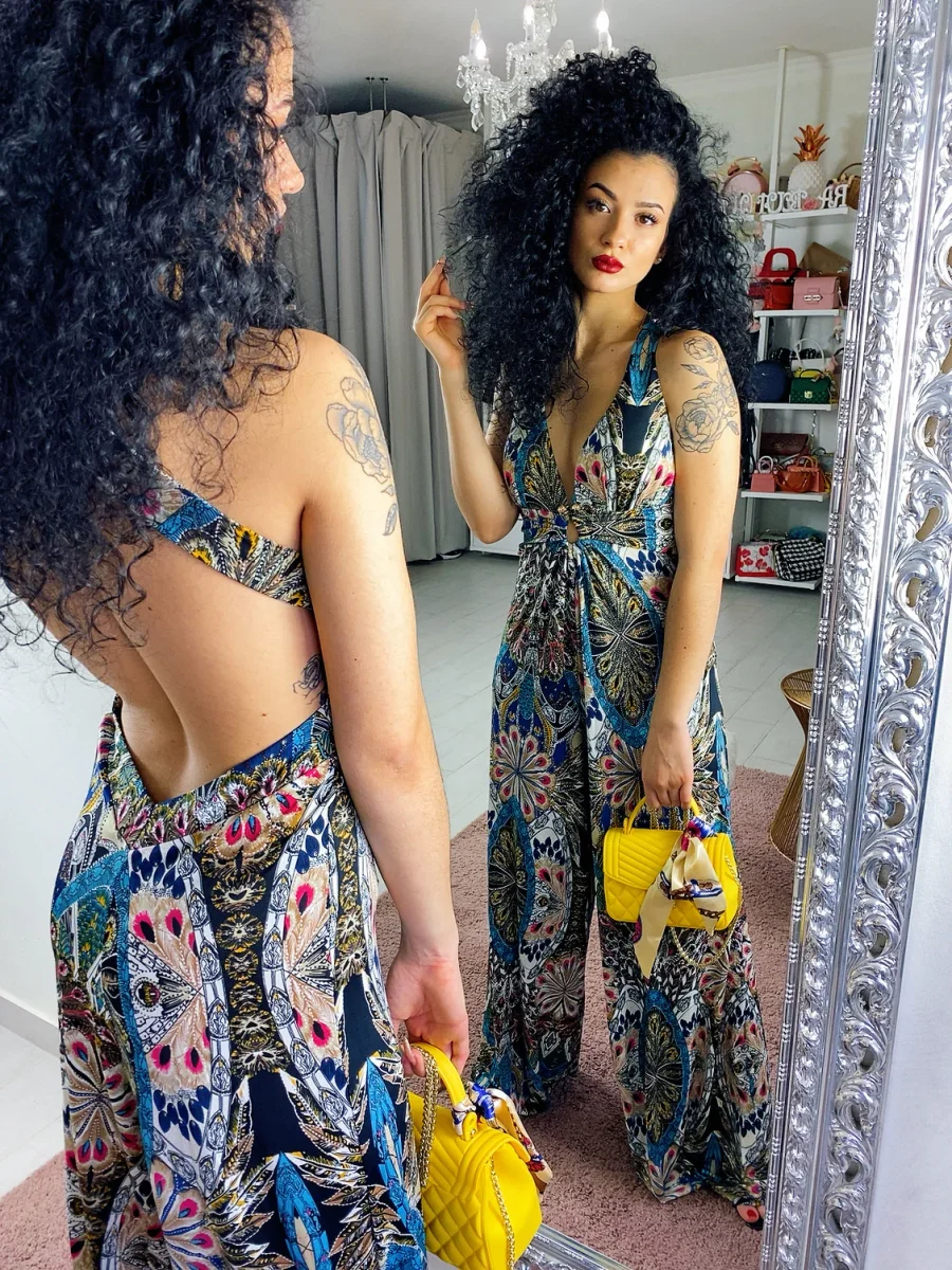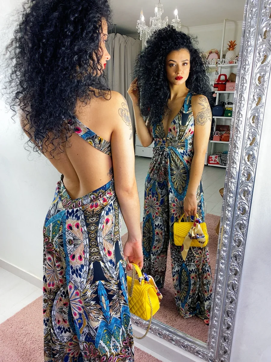 Tuta in viscosa in tessuto elasticizzato ma Vestibilità piccola non consigliamo a chi ha un bacino largo.