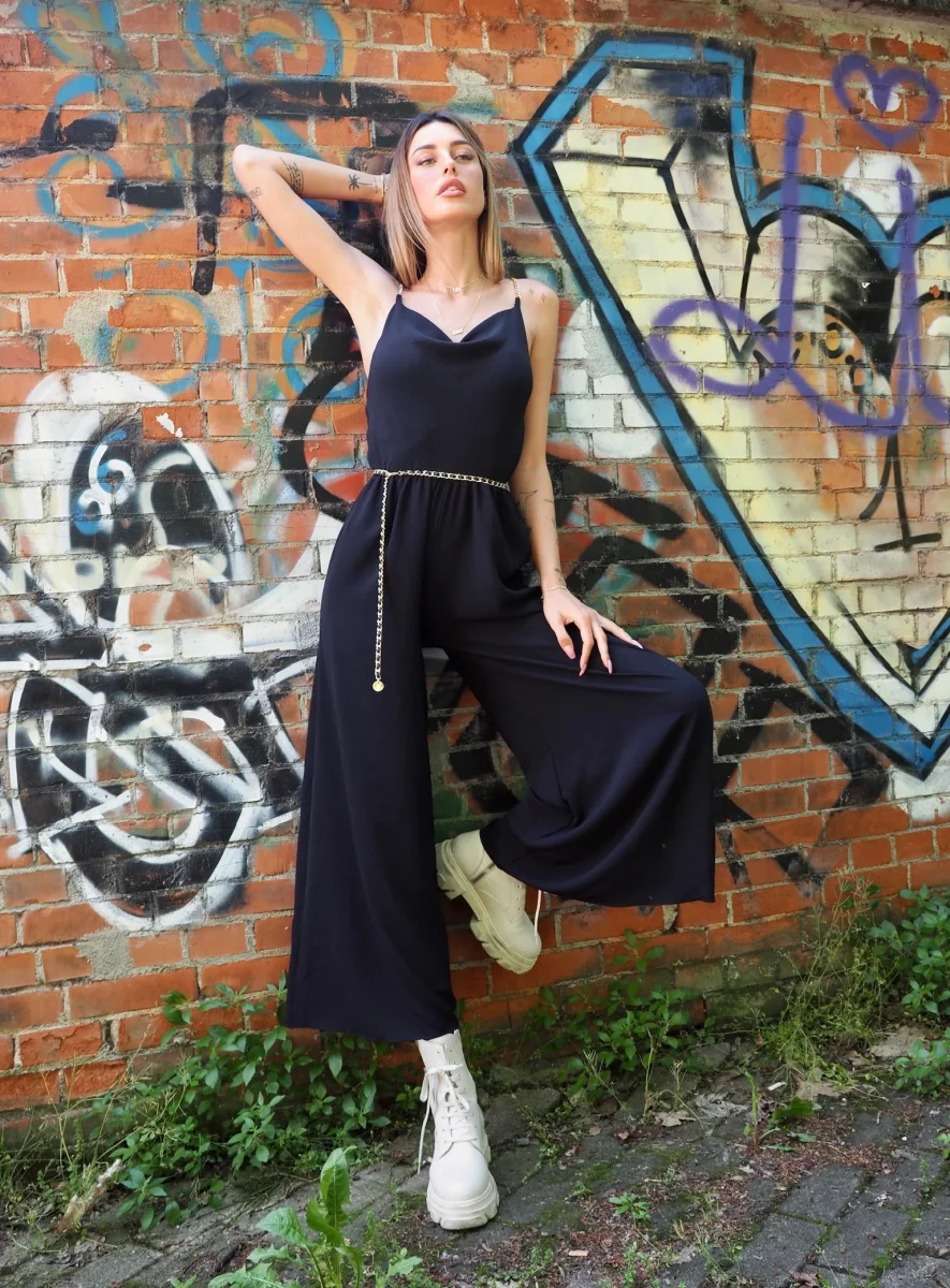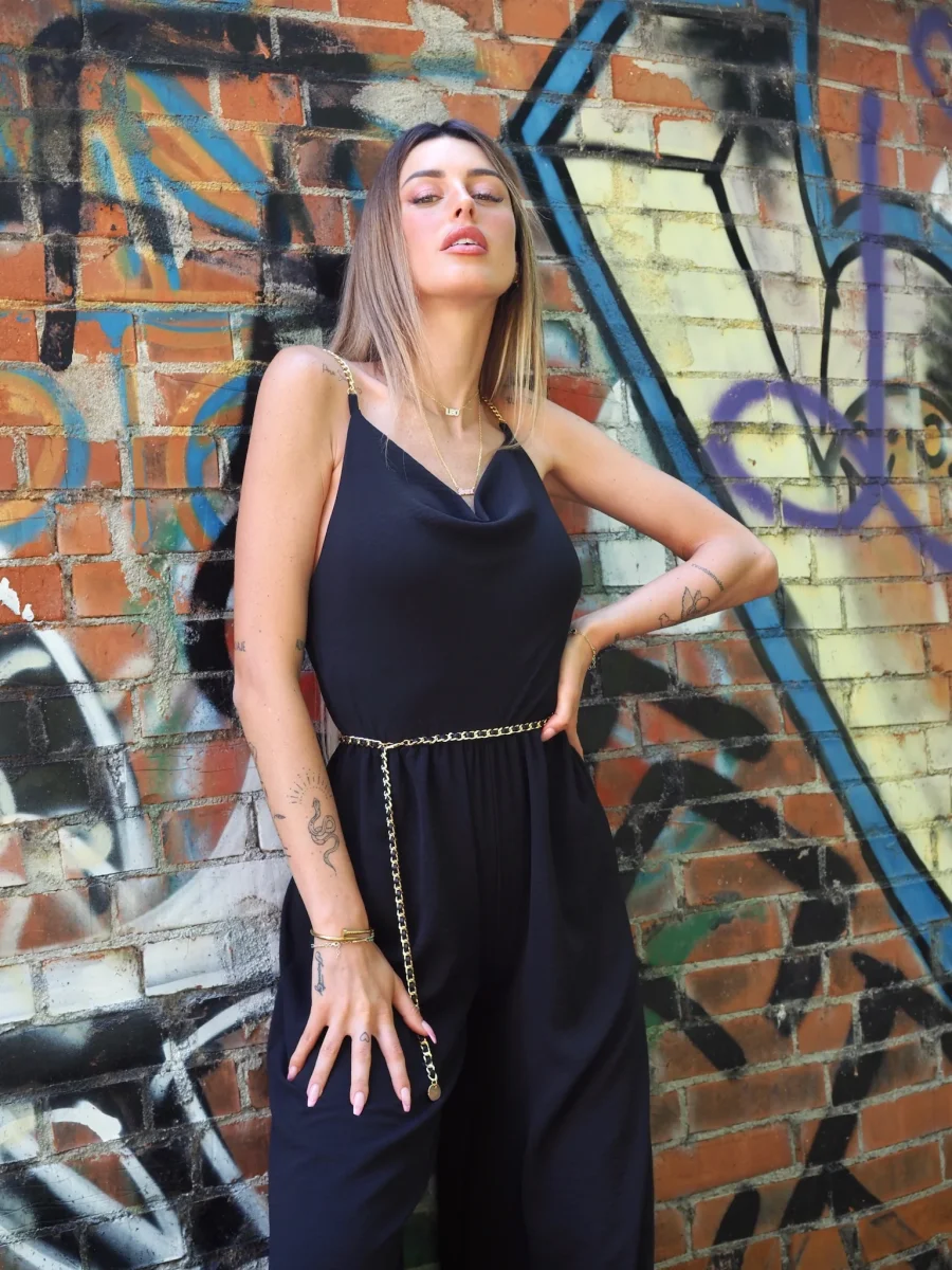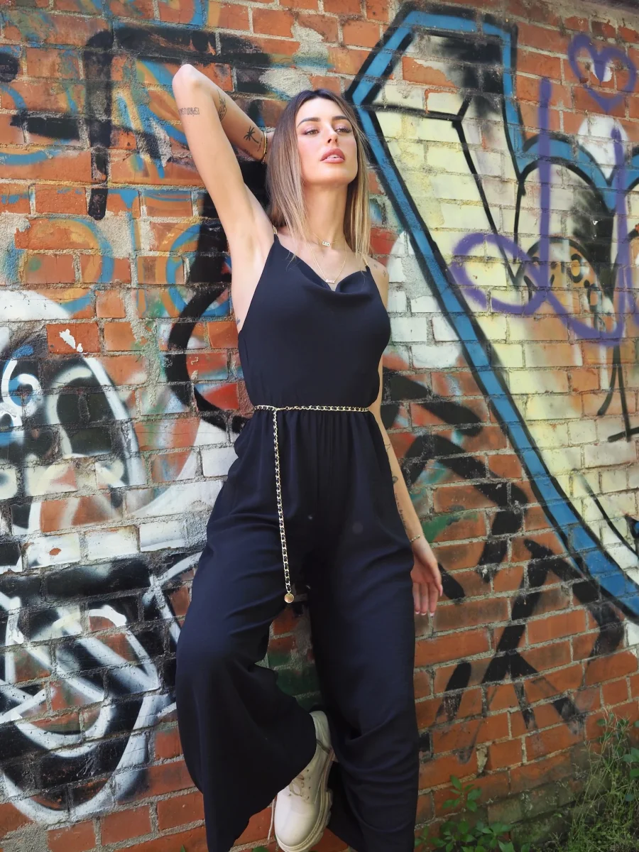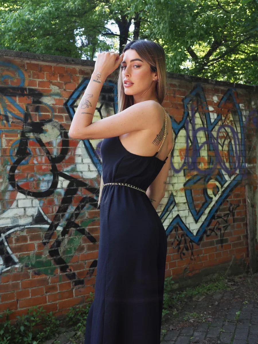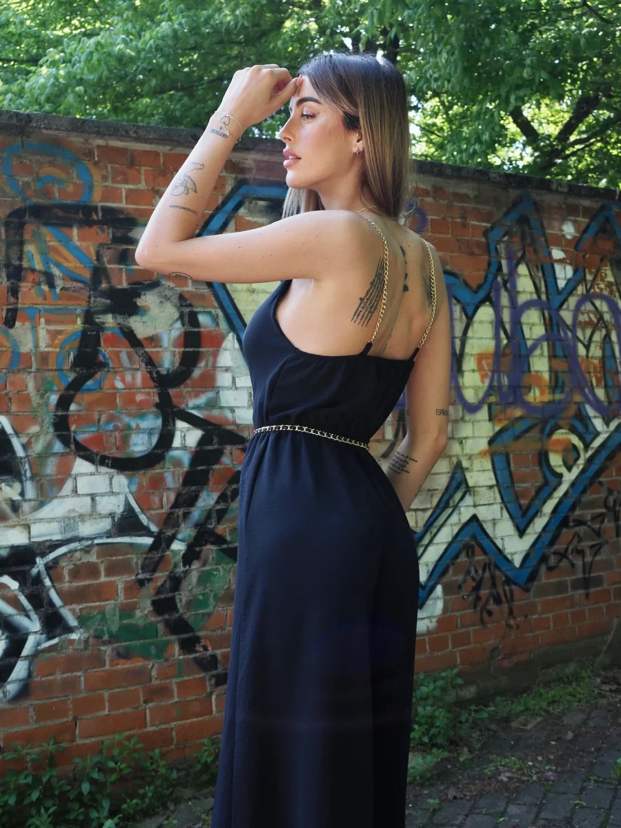 Tua intera a palazzo con elastico in vita e spalline in catena