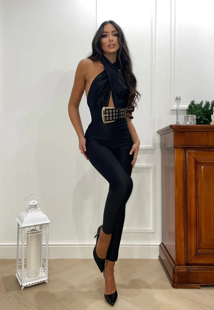 Tuta nera incrociata sul collo