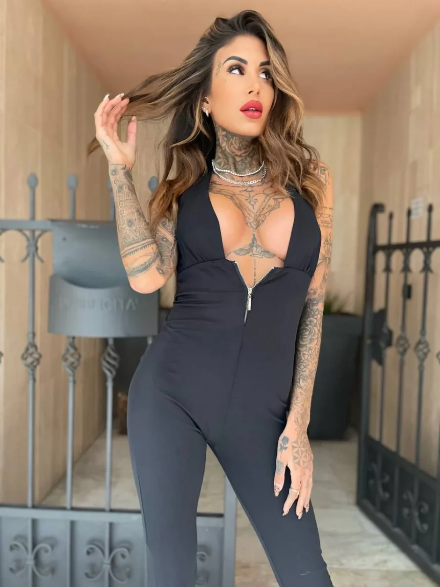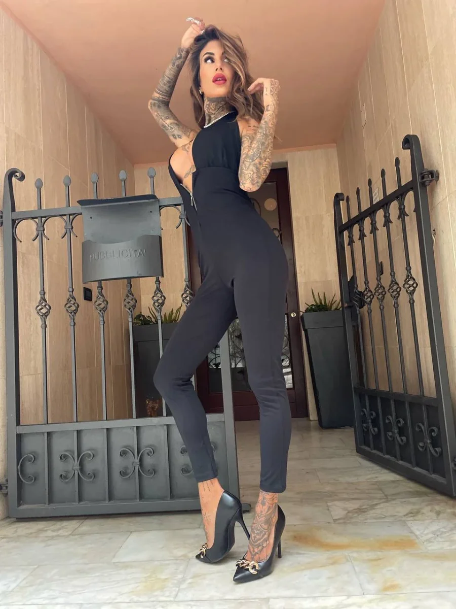 Tuta a fantasia aderente e intera, zip regolabile e chiusura dietro al collo.