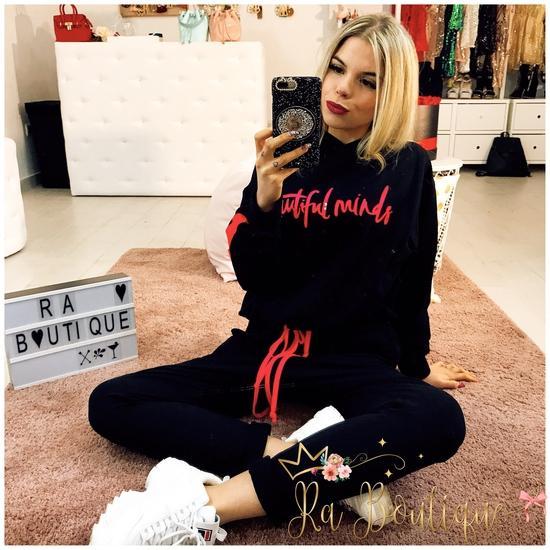 Tuta bicolor con stampa fucsia