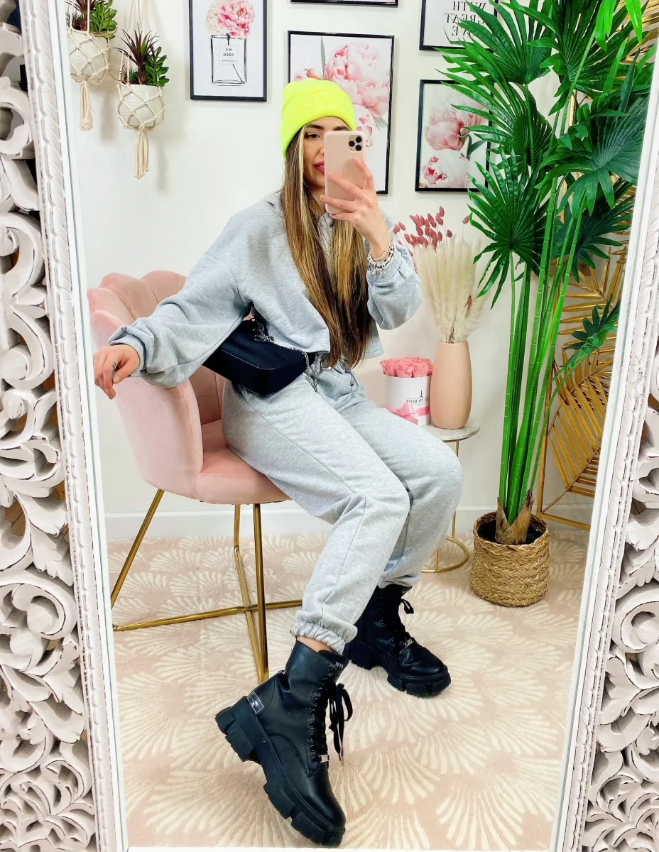 Tuta due pezzi composta da felpina e pantalone, tessuto garzato leggero. Molto elasticizzata
