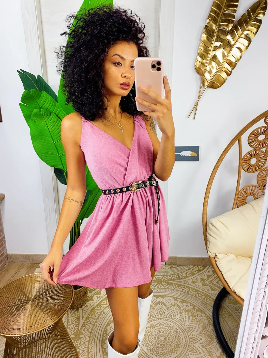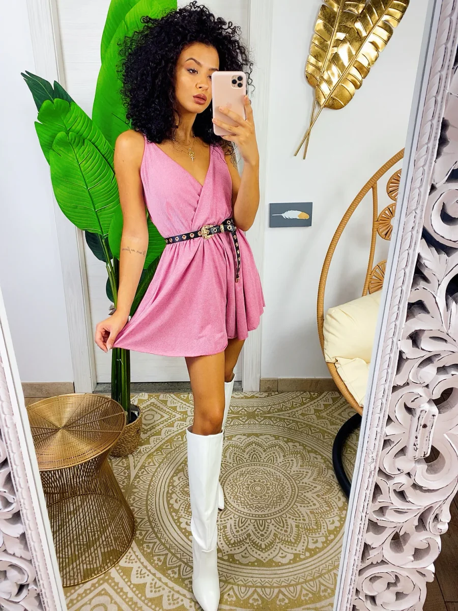 Tutina a bretellina rosa glitter