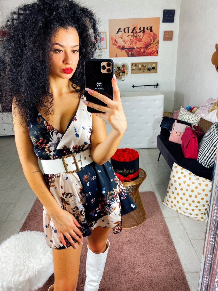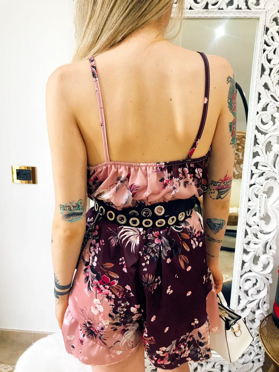 Tutina in ottimo raso con stampa a fiori. Nuova collezione