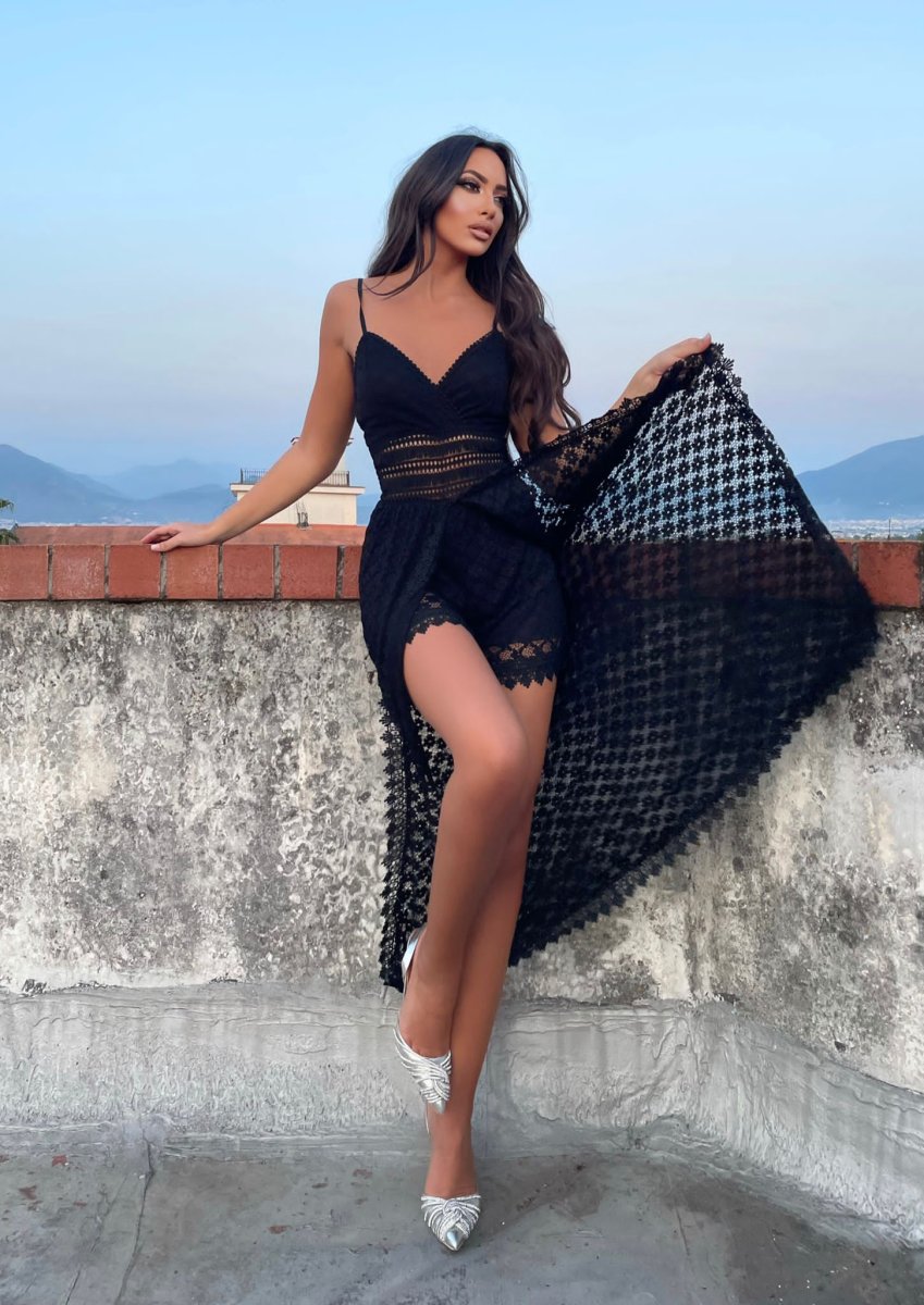 Tutina in pizzo, senza coppe e spalline con maxi gonna