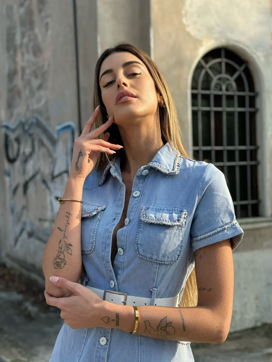 Tutina in jeans alta qualità con chiusura con bottoni,