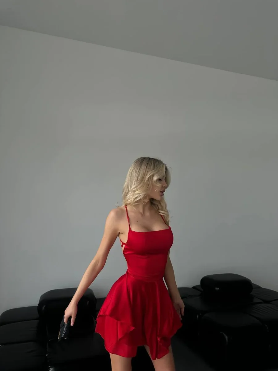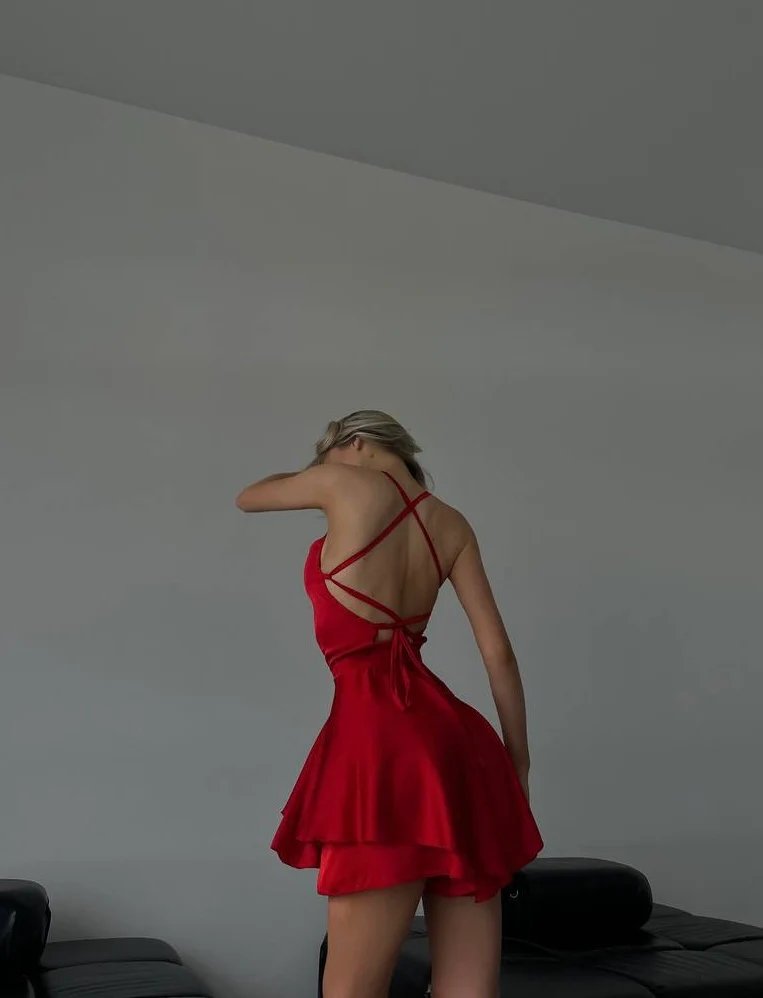 Tutina in seta rosso schiena incrociata