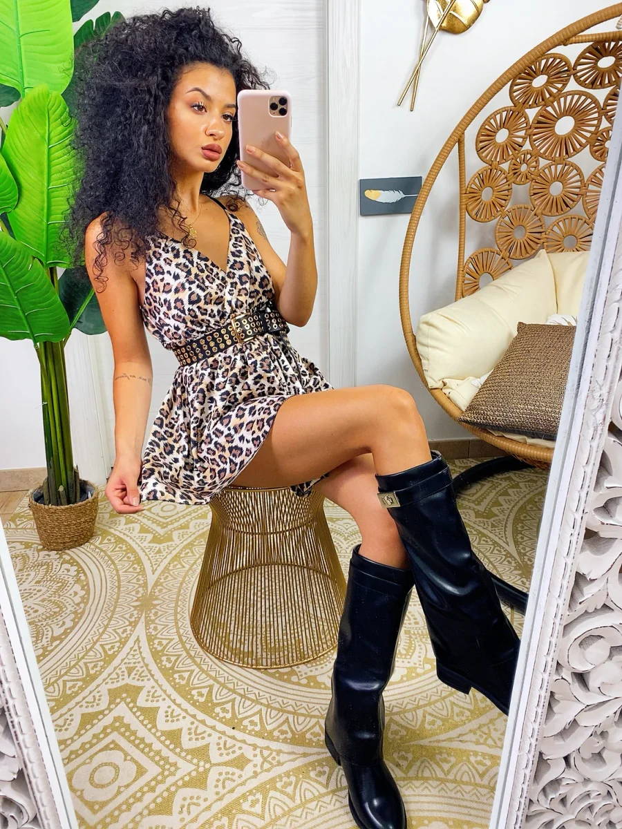 Tutina leggera in tessuto maculato, elasticizzato sul corpino. Taglia unica