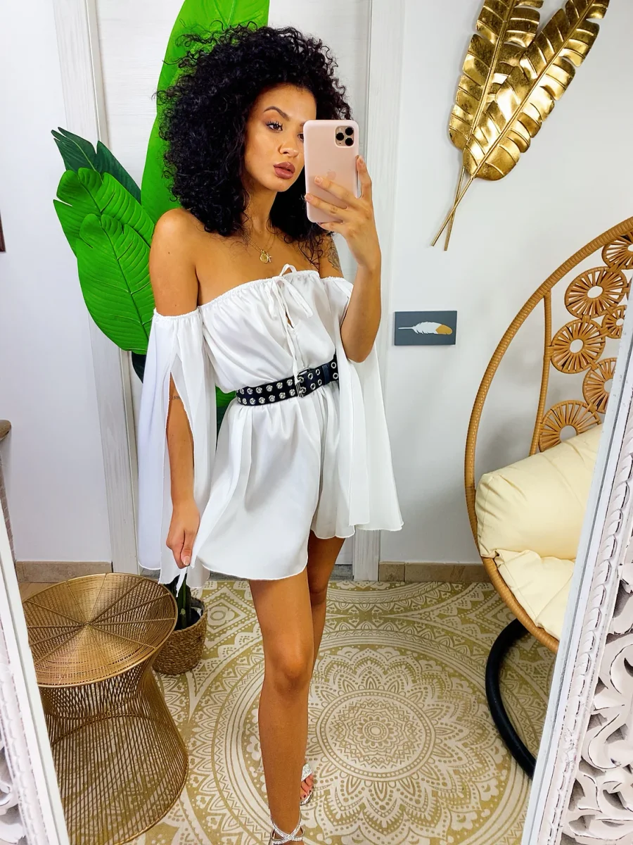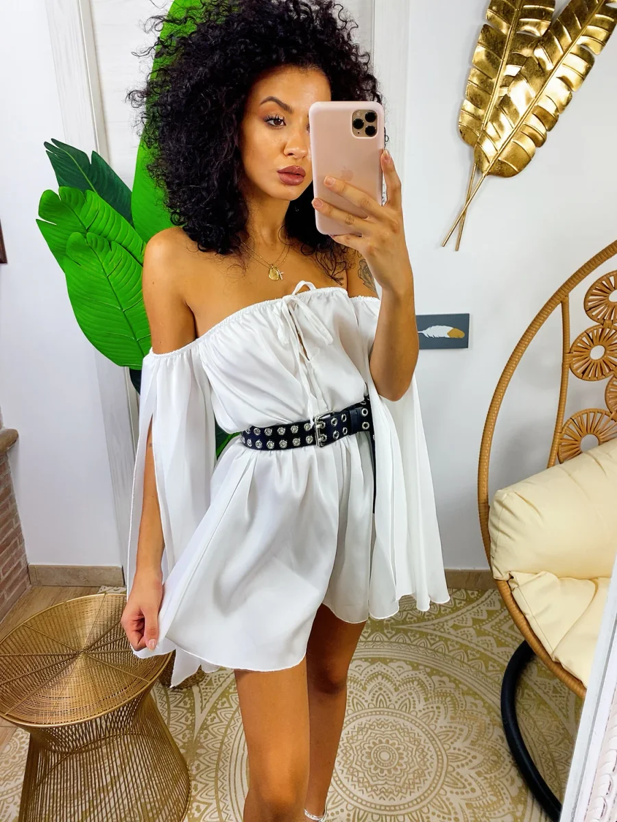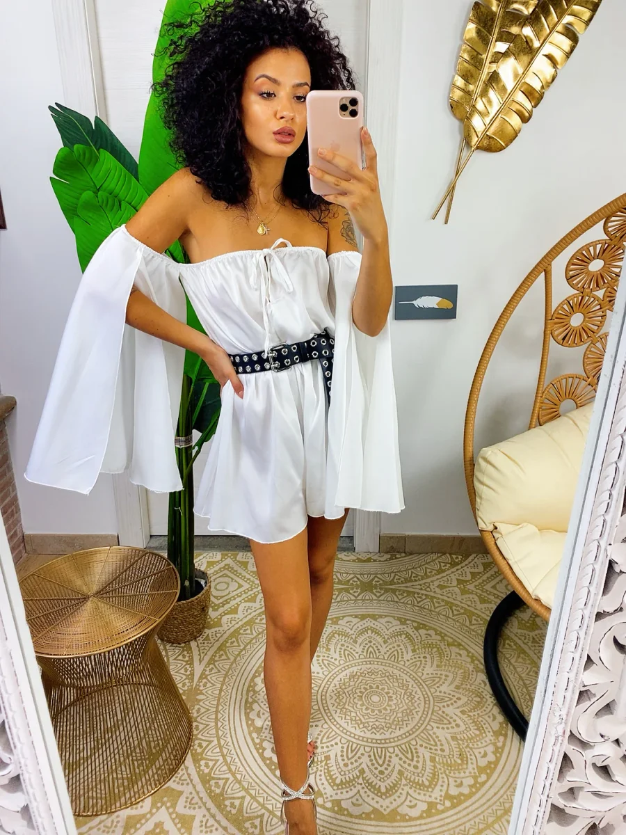 Tutina con manica larga a kimono e elastico in vita . Taglia unica elasticizzato.