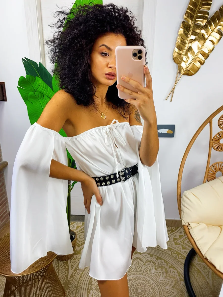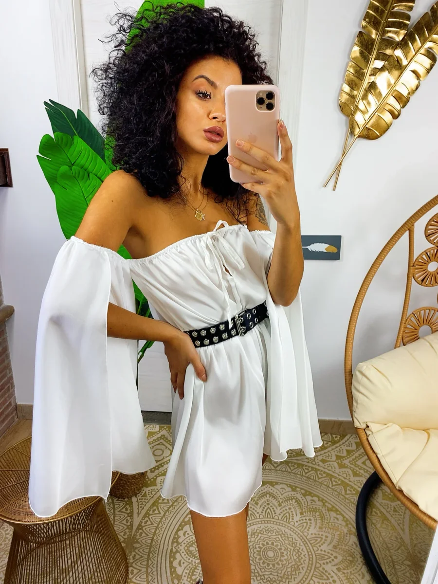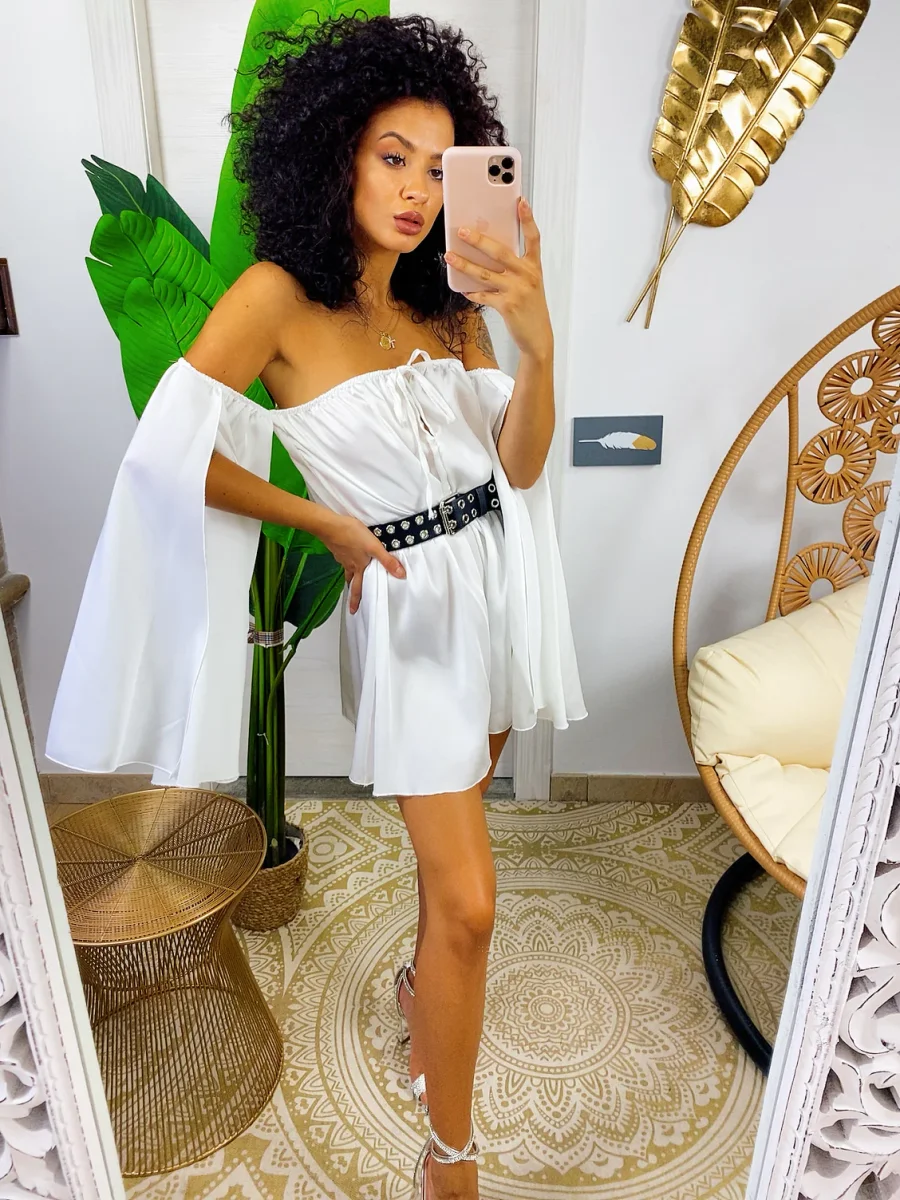 Tutina con manica larga a kimono e elastico in vita . Taglia unica elasticizzato.